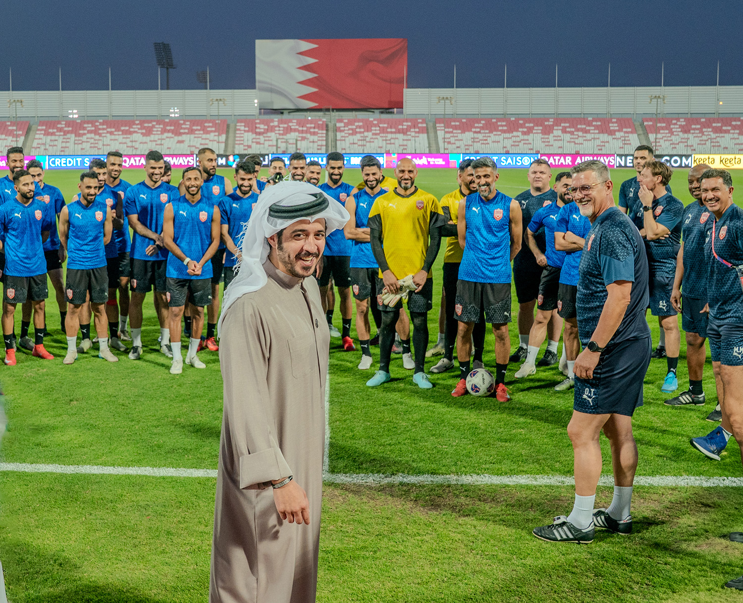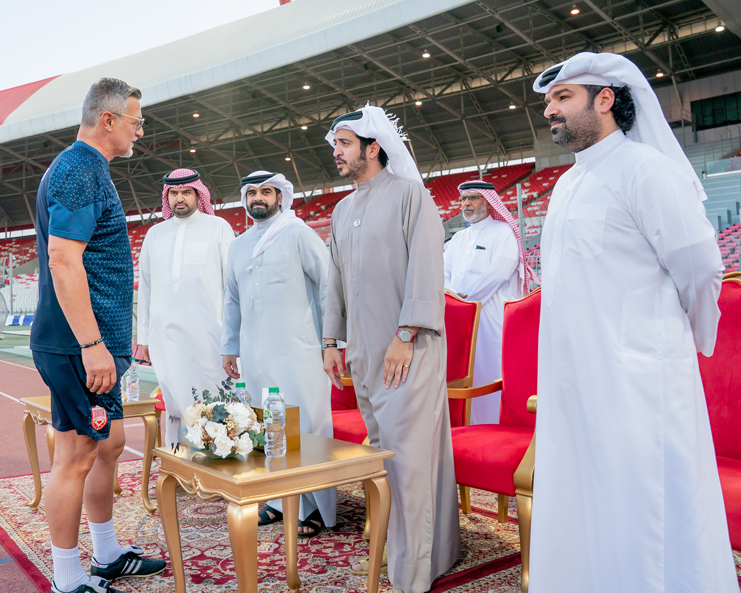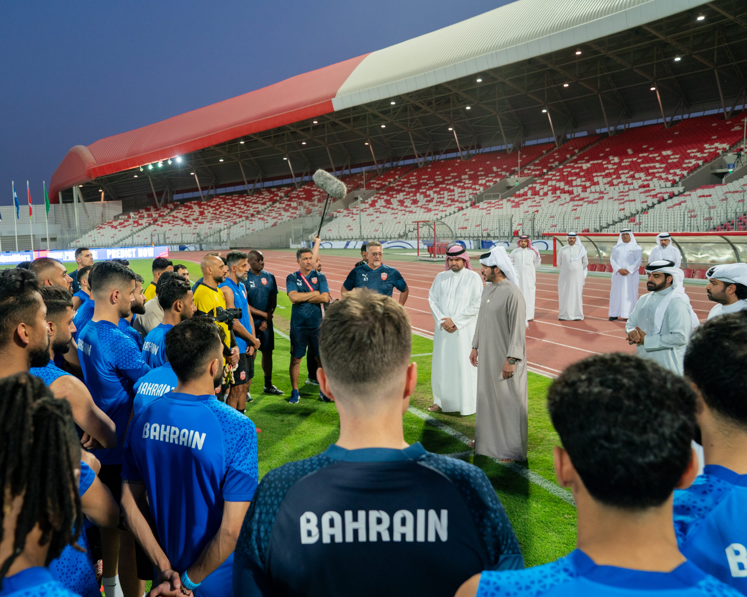 وشهد التدريبات سمو الشيخ سلمان بن محمد آل خليفة نائب رئيس الهيئة العامة للرياضة وسمو الشيخ عيسى بن علي آل خليفة نائب رئيس اللجنة الأولمبية البحرينية وسمو الشيخ خليفة بن علي آل خليفة نائب رئيس الاتحاد البحريني لكرة القدم.