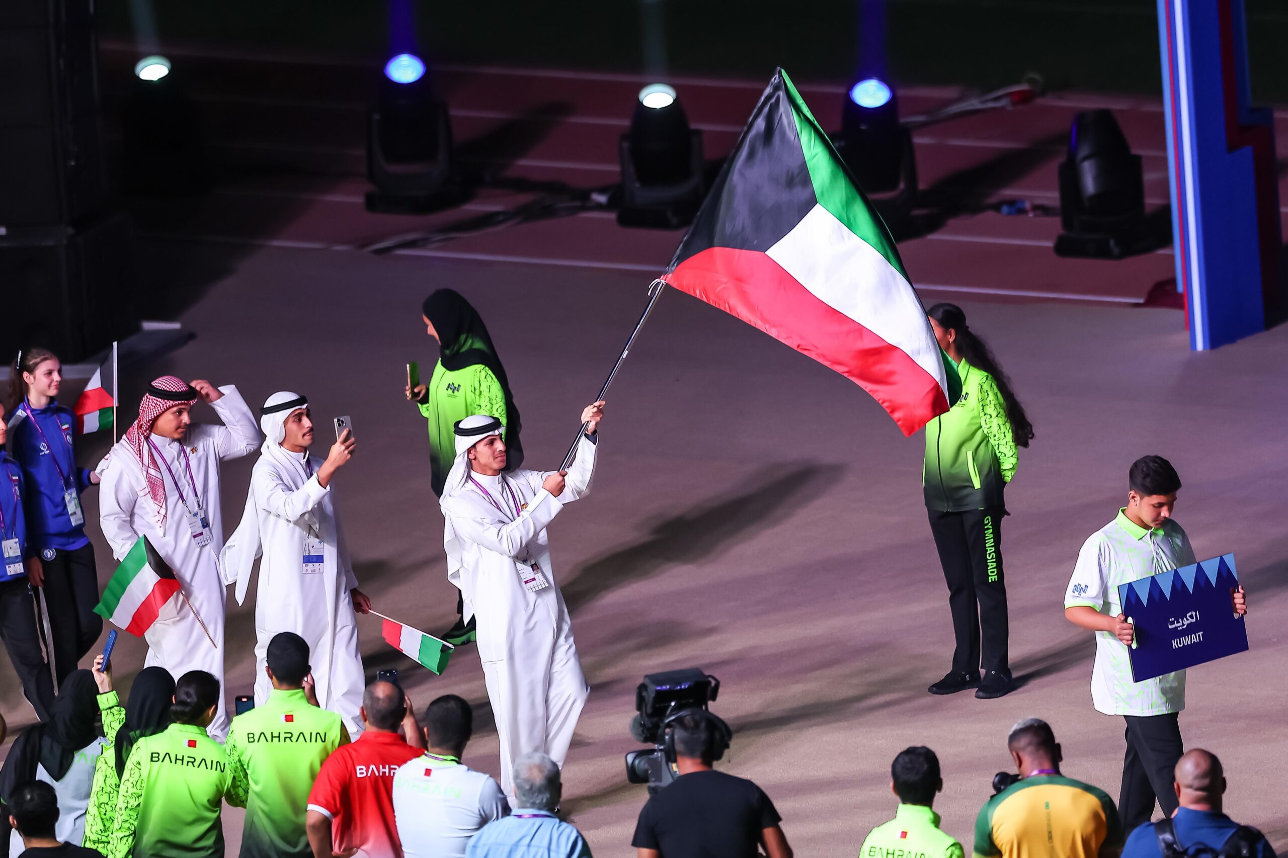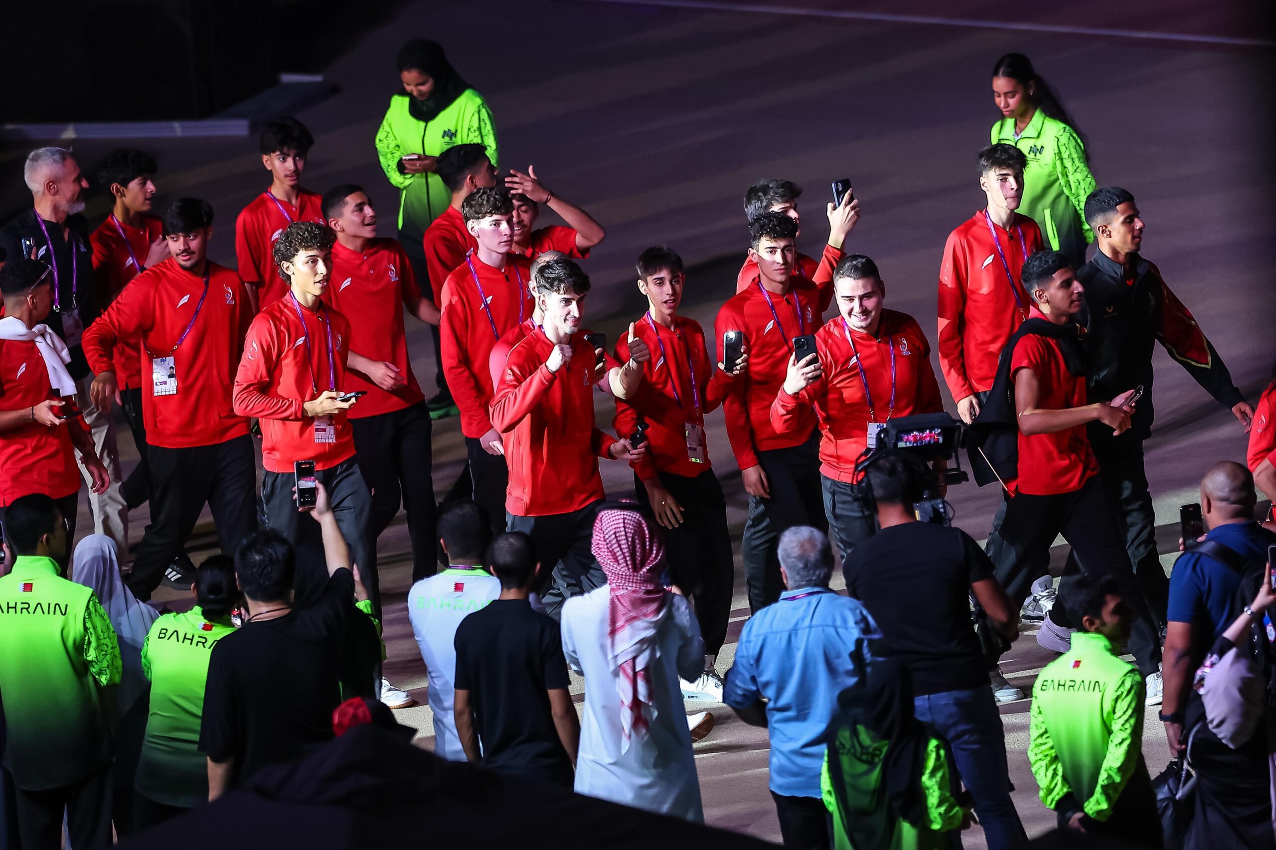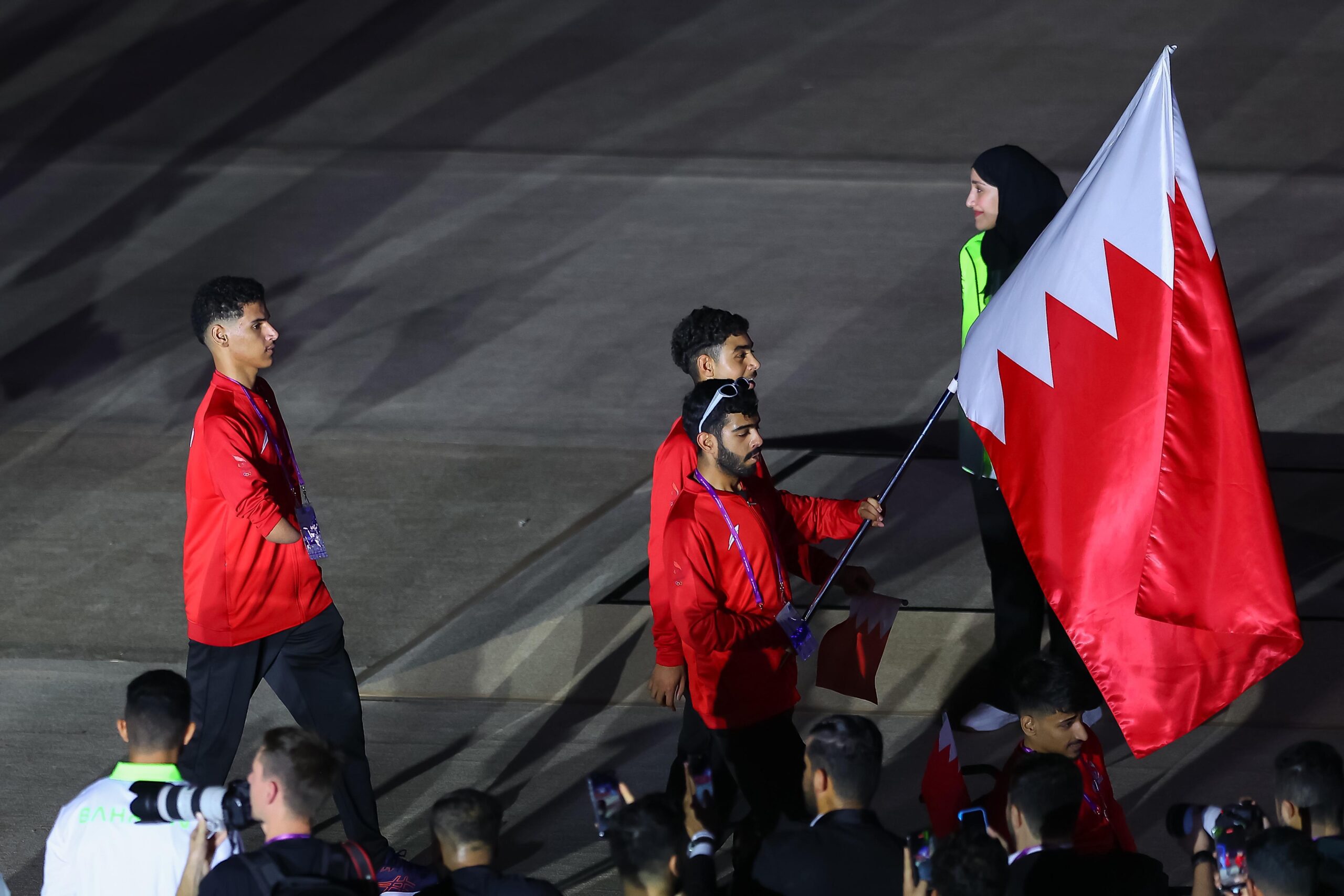 بعدها دخلت الوفود الطلابية من الدول المشاركة مشكّلين طابور عرض ضمّ 70 وفداً، في أضخم استعراض رياضي تشهده مملكة البحرين.