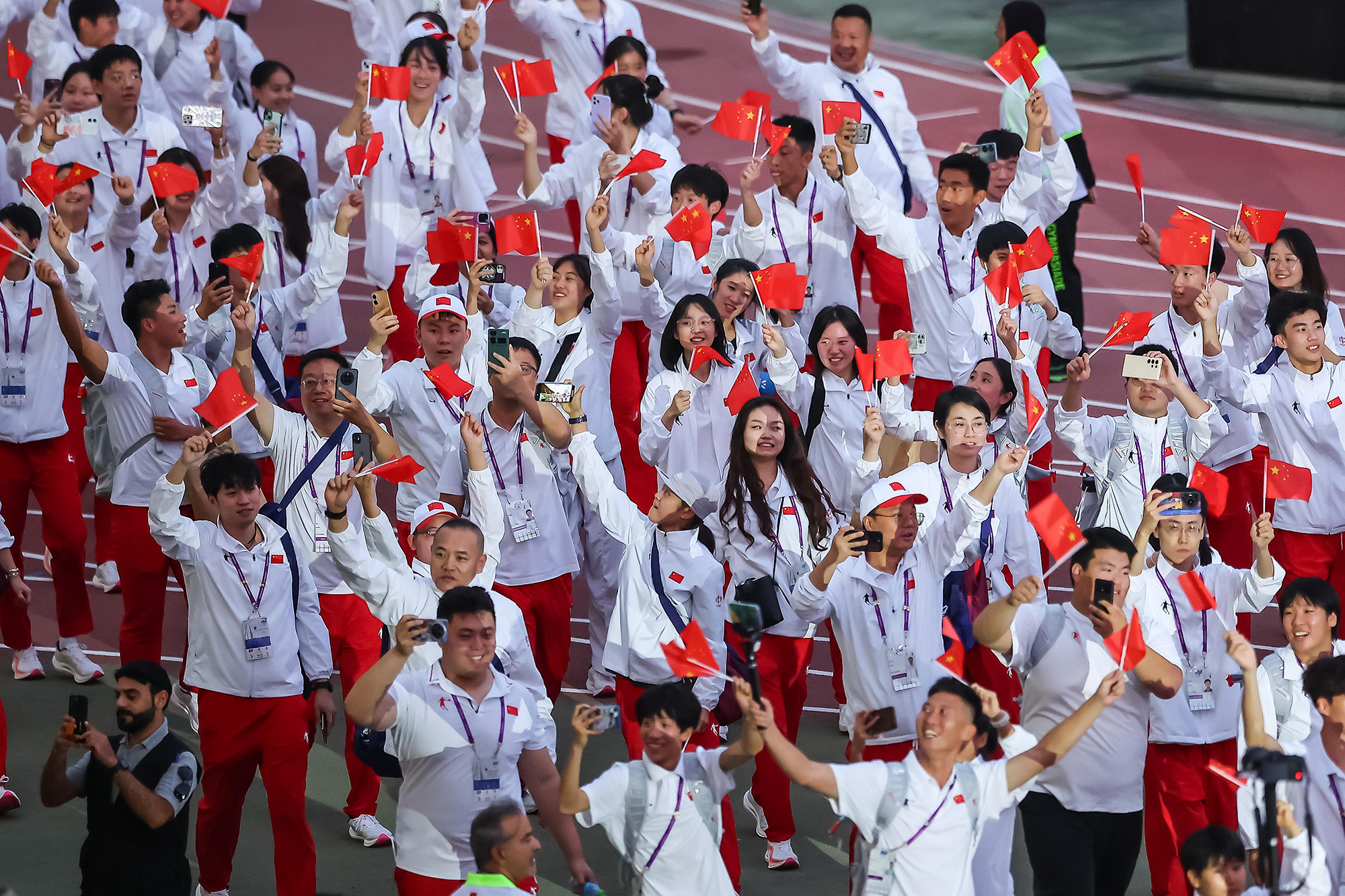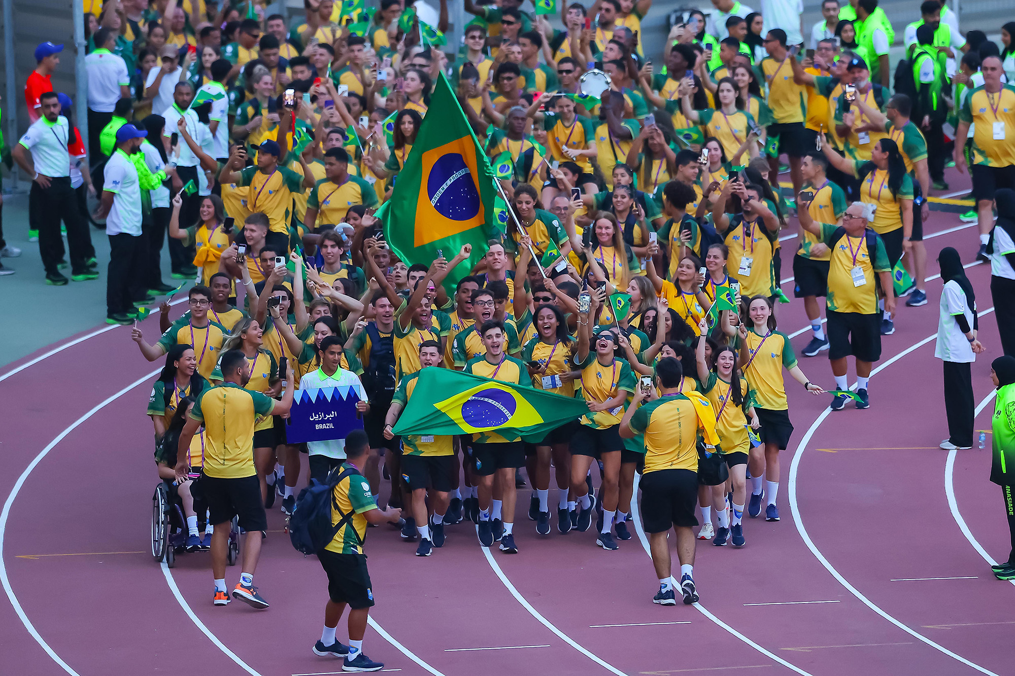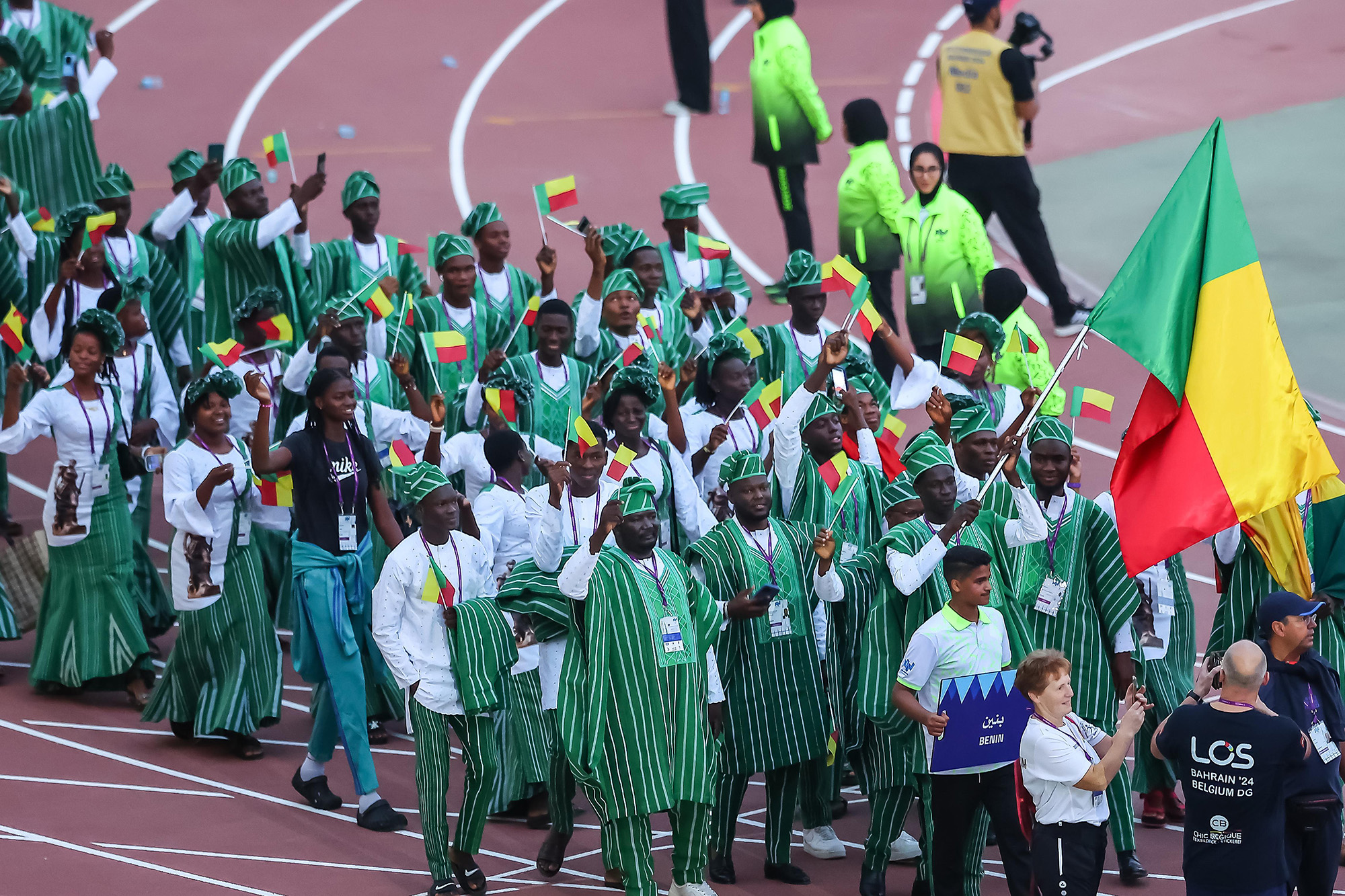 بعدها دخلت الوفود الطلابية من الدول المشاركة مشكّلين طابور عرض ضمّ 70 وفداً، في أضخم استعراض رياضي تشهده مملكة البحرين.