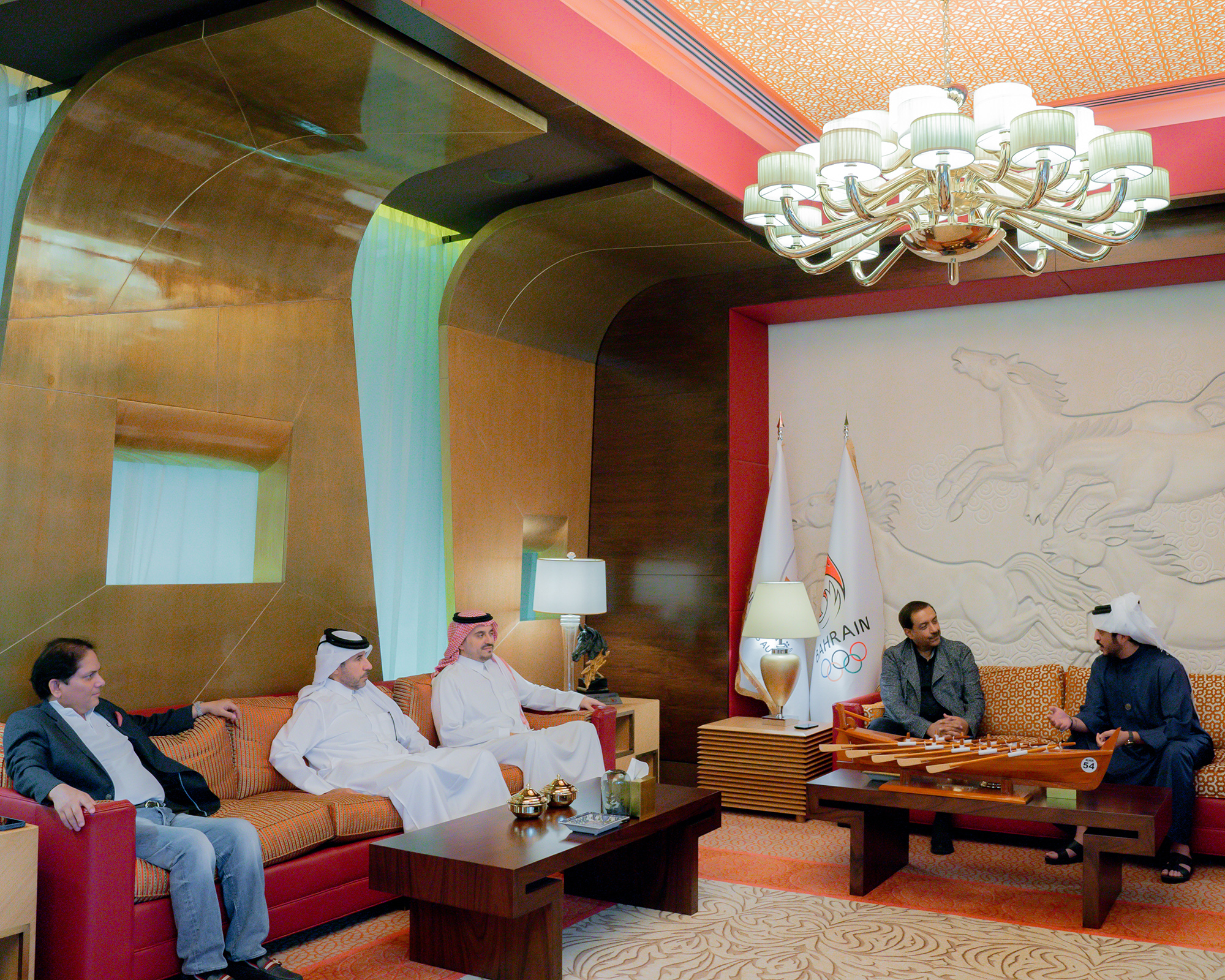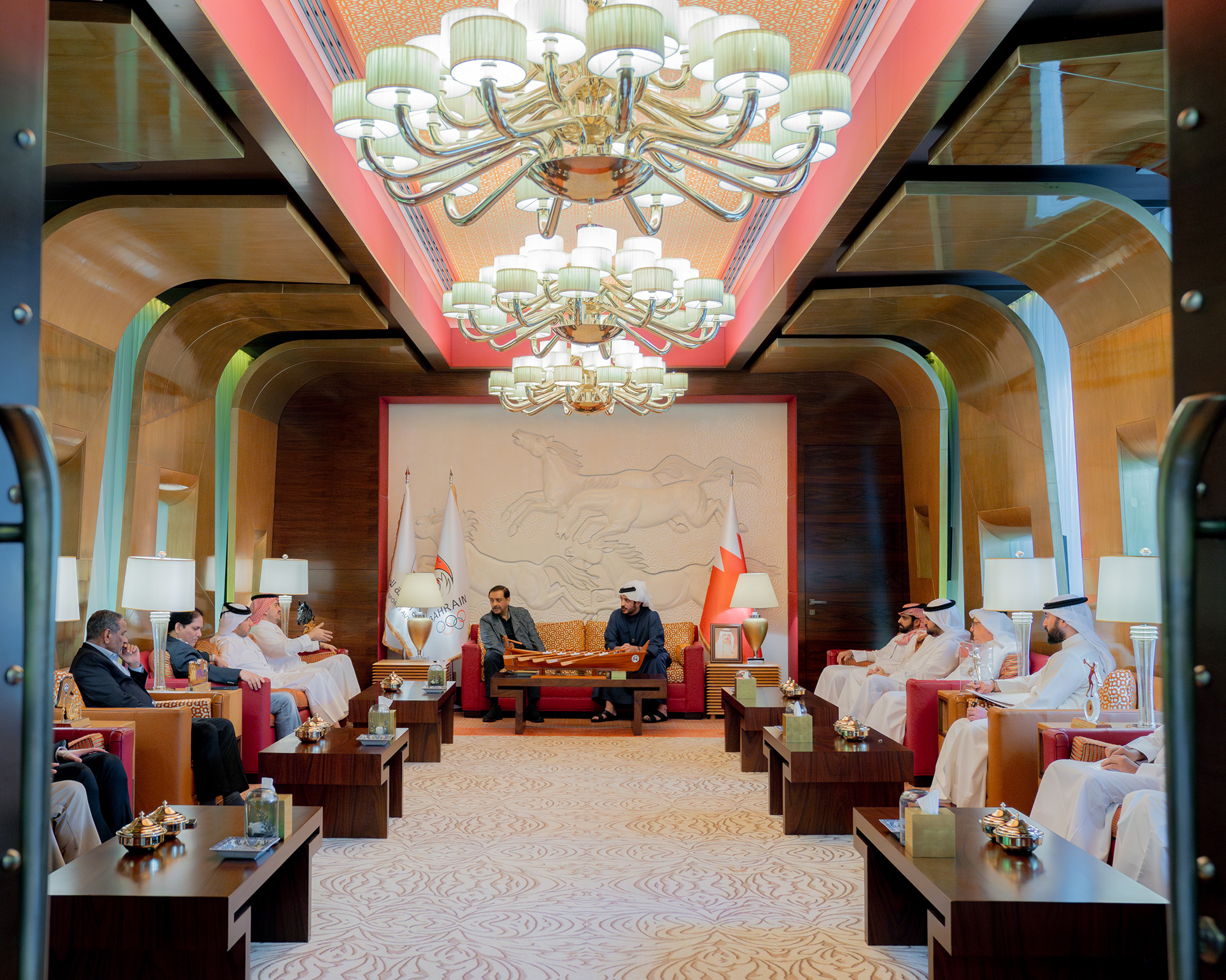 استقبل سمو الشيخ خالد بن حمد آل خليفة، النائب الأول لرئيس المجلس الأعلى للشباب والرياضة، رئيس الهيئة العامة للرياضة رئيس اللجنة الأولمبية البحرينية، أعضاء اللجنة التنسيقية لدورة الألعاب الآسيوية الثالثة التي ستستضيفها مملكة البحرين  من 22-31 اكتوبر المقبل والتي تضم ممثلين عن المجلس الأولمبي الآسيوي واللجنة المنظمة المحلية وذلك في إطار حرص سموه على متابعة الاستعدادات والتحضيرات الجارية لتنظيم هذا الحدث القاري الكبير.
