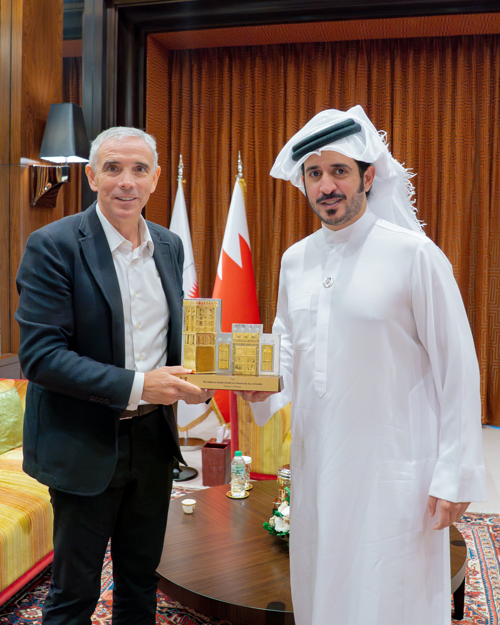 استقبل سمو الشيخ خالد بن حمد آل خليفة النائب الأول لرئيس المجلس الأعلى للشباب والرياضة رئيس الهيئة العامة للرياضة رئيس اللجنة الأولمبية البحرينية رئيس الاتحاد الدولي للترايثلون السيد أنطونيو رومانيو، وذلك بحضور سمو الشيخ سلمان بن محمد آل خليفة نائب رئيس الهيئة العامة للرياضة وسمو الشيخ عيسى بن علي آل خليفة نائب رئيس اللجنة الأولمبية البحرينية و سعادة الدكتور عبدالرحمن صادق عسكر الرئيس التنفيذي للهيئة العامة للرياضة وسعادة السيد فارس مصطفى الكوهجي، الأمين العام للجنة الأولمبية.