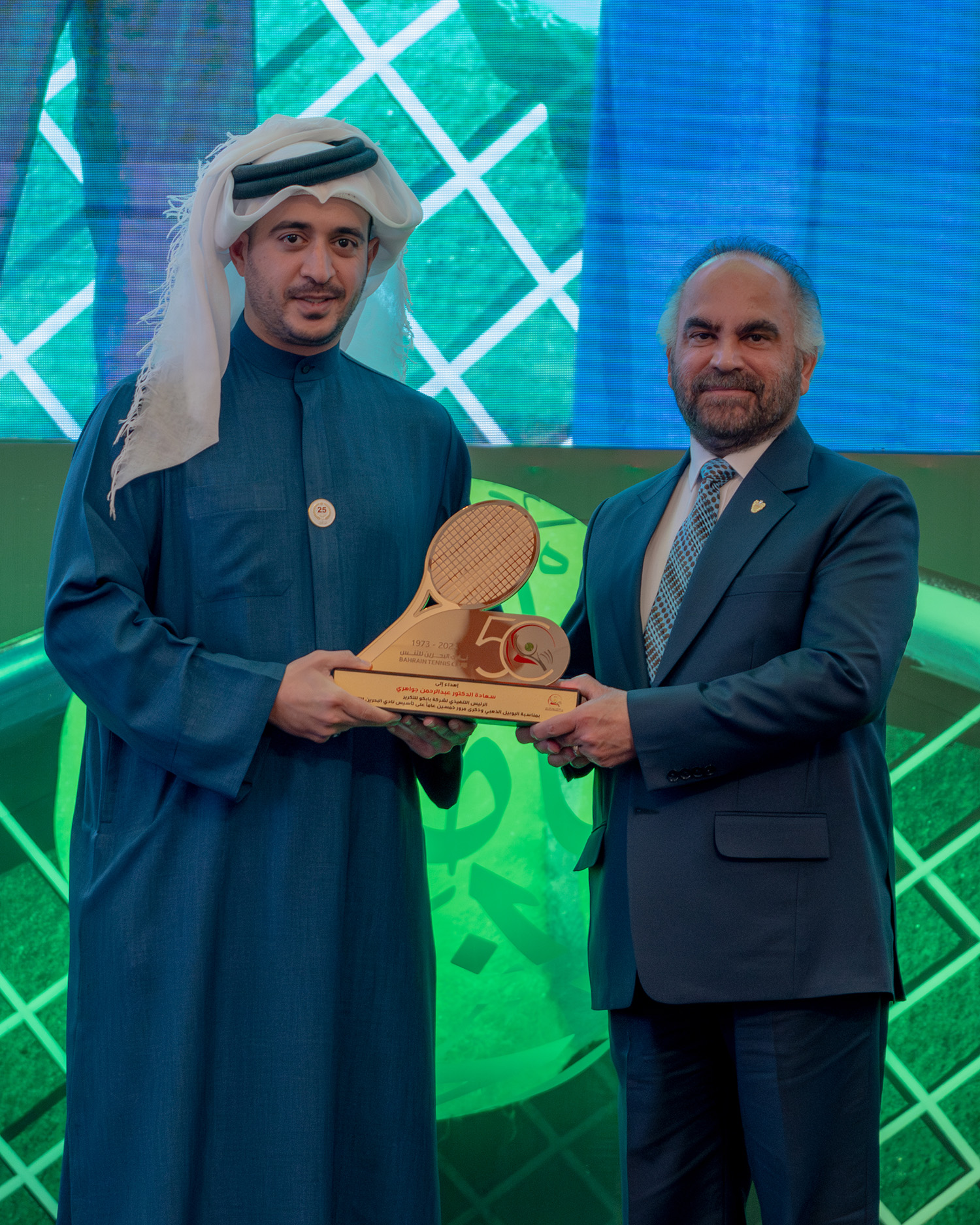 أناب حضرة صاحب الجلالة الملك حمد بن عيسى آل خليفة ملك البلاد المعظم حفظه الله ورعاه، سمو الشيخ خالد بن حمد آل خليفة النائب الأول لرئيس المجلس الأعلى للشباب والرياضة رئيس الهيئة العامة للرياضة رئيس اللجنة الأولمبية البحرينية لرعاية حفل نادي البحرين للتنس بذكرى مرور 50 على تأسيس النادي والذي أقيم بقاعة الدانة بفندق الخليج الإثنين 30 سبتمبر 2024.