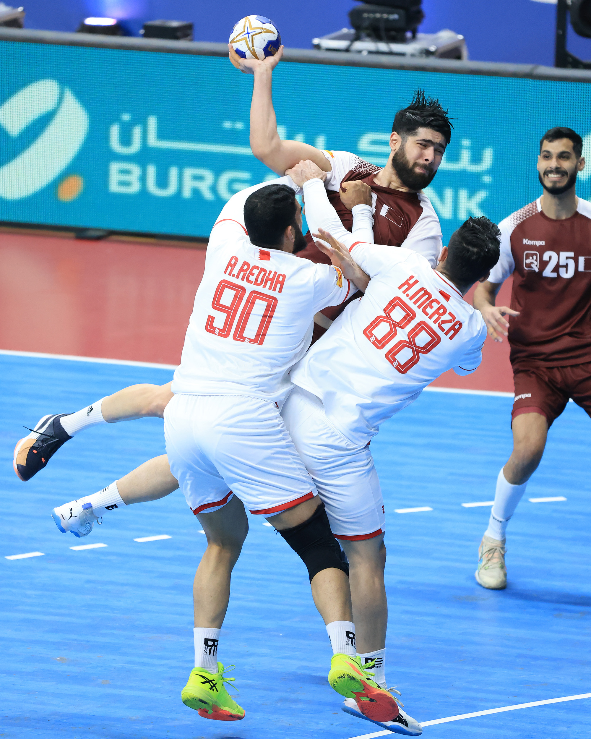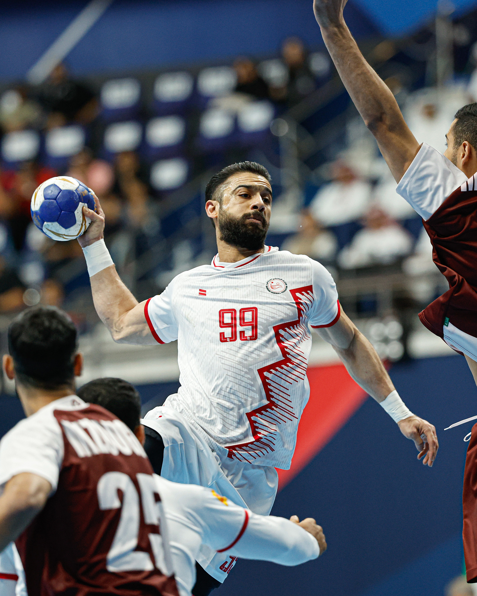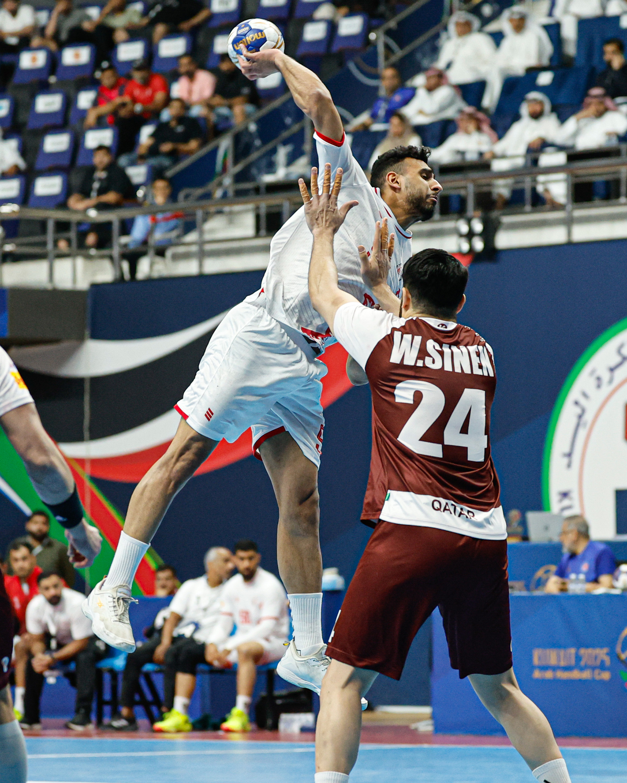 شهد سمو الشيخ خالد بن حمد آل خليفة النائب الأول لرئيس المجلس الأعلى للشباب والرياضة رئيس الهيئة العامة للرياضة رئيس اللجنة الأولمبية البحرينية المباراة النهائية لكأس العرب لكرة اليد للرجال والتي أقيمت بين منتخبنا الوطني ونظيره القطري بدولة الكويت الشقيقة الأحد 11 مايو 2025 وانتهت لصالح المنتخب القطري الشقيق بنتيجة 25/22.
