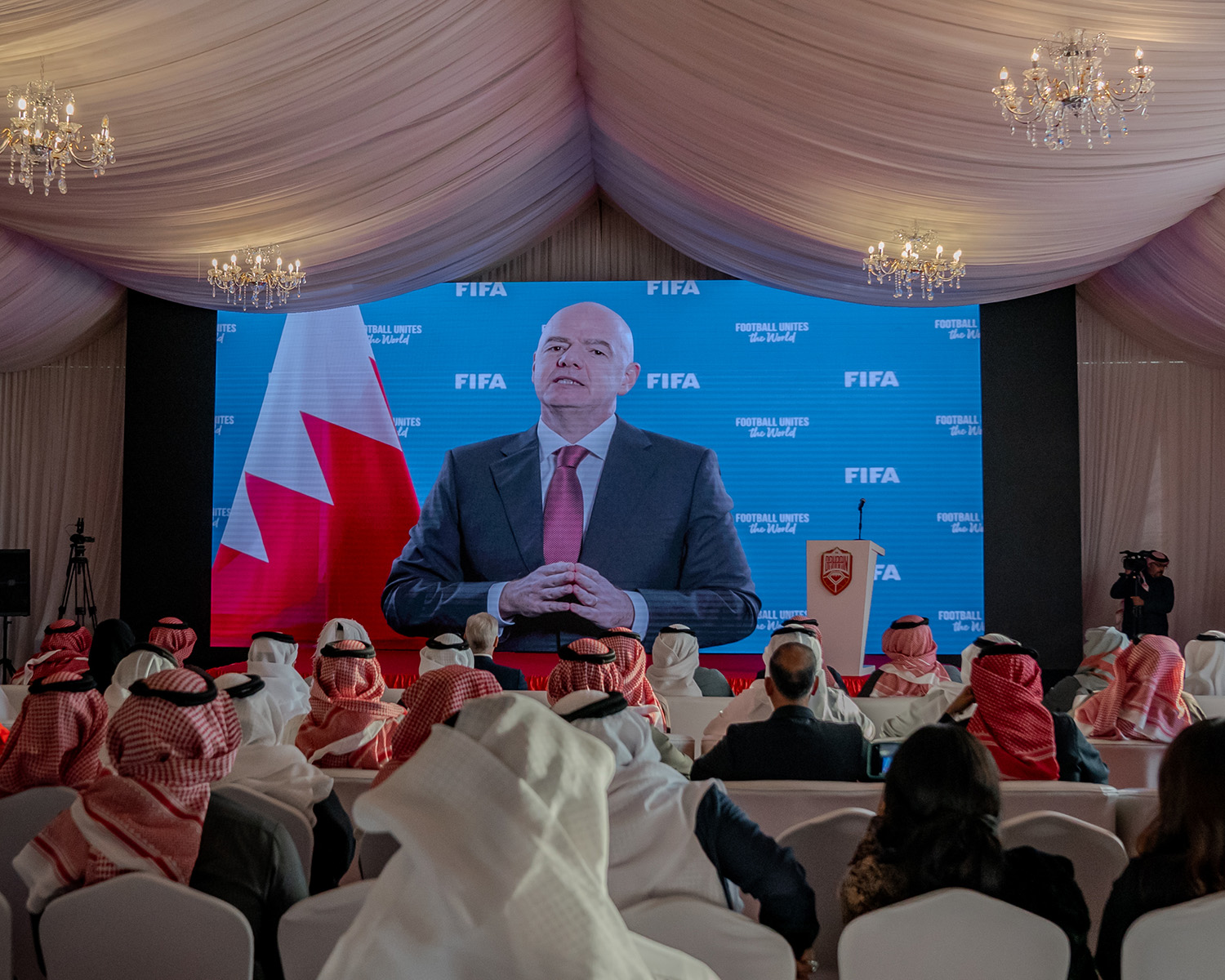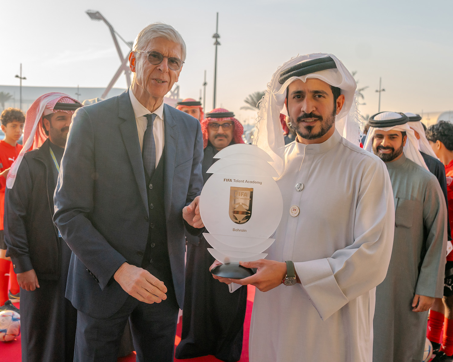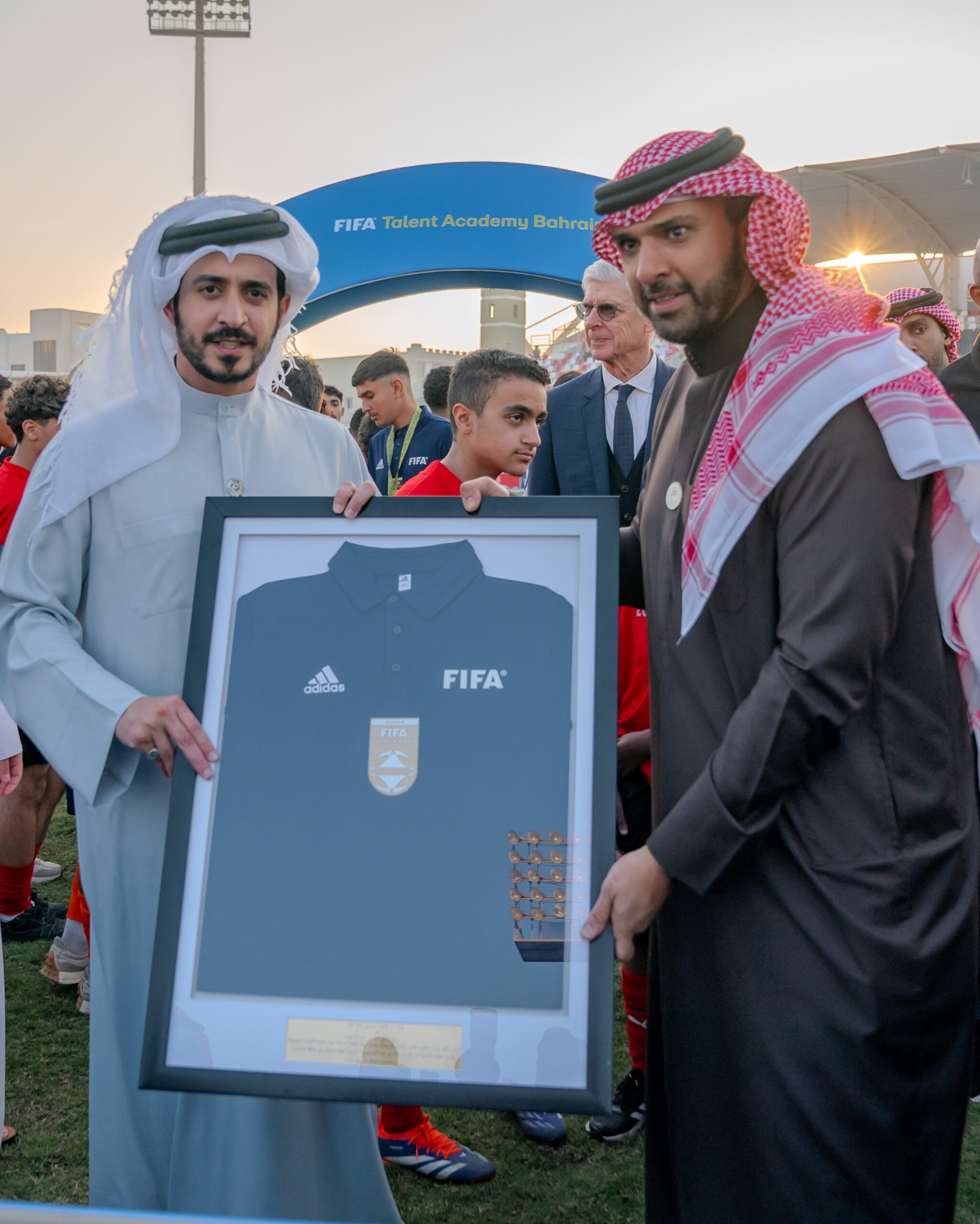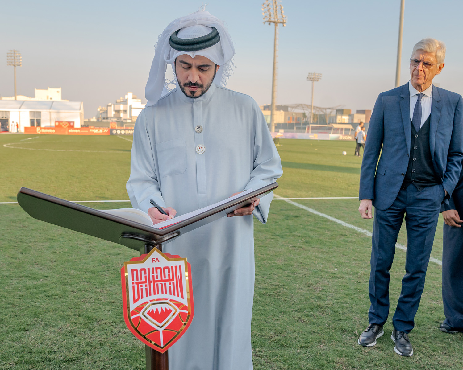 جاء ذلك بحضور عدد من أصحاب السمو والمعالي والسعادة وعدد من الوزراء والمسئولين وأعضاء مجلس إدارة الاتحاد البحريني لكرة القدم وبحضور المدرب الفرنسي العالمي السيد آرسين فينغر رئيس قسم تطوير كرة القدم العالمية في ” الفيفا” وعدد من المدعوين وكبار الحضور.