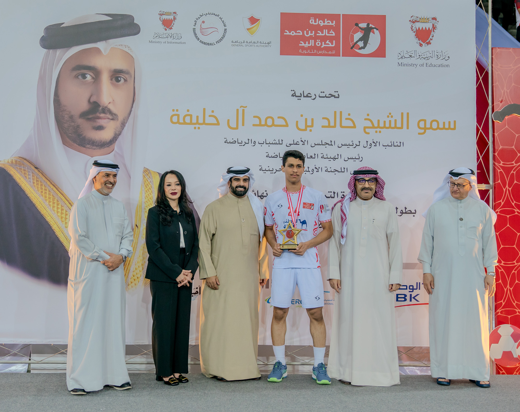 تحت رعاية سمو الشيخ خالد بن حمد آل خليفة النائب الأول لرئيس المجلس الأعلى للشباب والرياضة رئيس الهيئة العامة للرياضة رئيس اللجنة الأولمبية البحرينية، أقيمت المباراة النهائية لبطولة خالد بن حمد لكرة اليد للمدارس الثانوية للعام الدراسي 2025/2024، والتي جمعت فريقي مدرسة أحمد العمران الثانوية للبنين ومعهد الشيخ خليفة بن سلمان للتكنولوجيا، وذلك بصالة مدينة خليفة الرياضية.