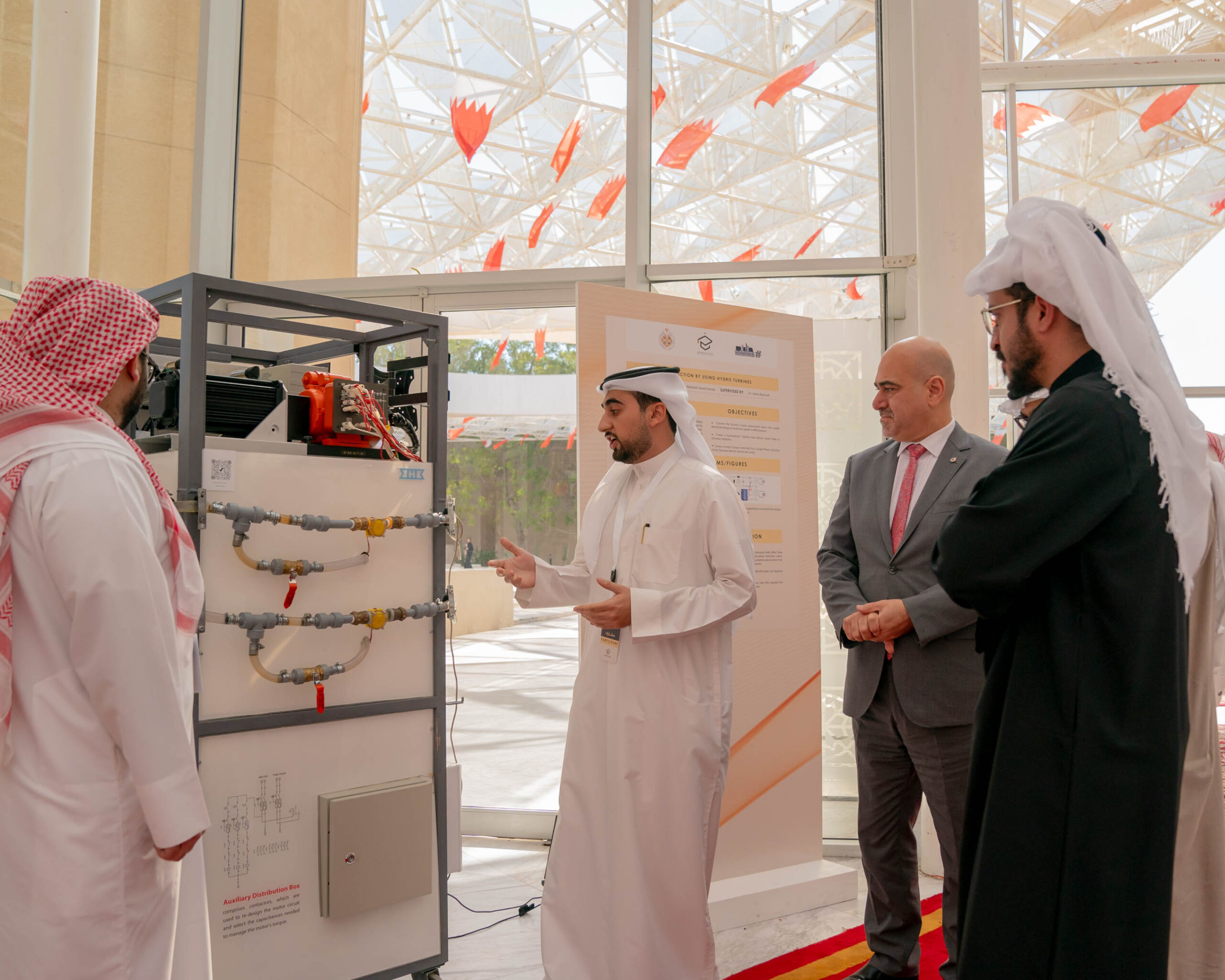 وأضاف د. الأنصاري: “تضمنت مشروعات الطلبة مقترحات وحلولاً هندسية وتقنية مبتكرة لمؤسسات القطاع الخاص، وقد جرى تداول هذه المقترحات والحلول مع الخبراء المختصين، الذين حرصوا على حضور المعرض، كما تم نشر عدد جيد من الأوراق العلمية الناتجة عن المشاريع، مشيراً إلى حرص الجامعة على توفير فرص متساوية للطلبة لعرض مهاراتهم، وتشجيعهم على الابتكار وصناعة التغيير، وحرصها أيضاً على معالجة تحديات العالم الحقيقي، من خلال تبني معايير الاستدامة وخدمة المجتمع في مشاريعهم.