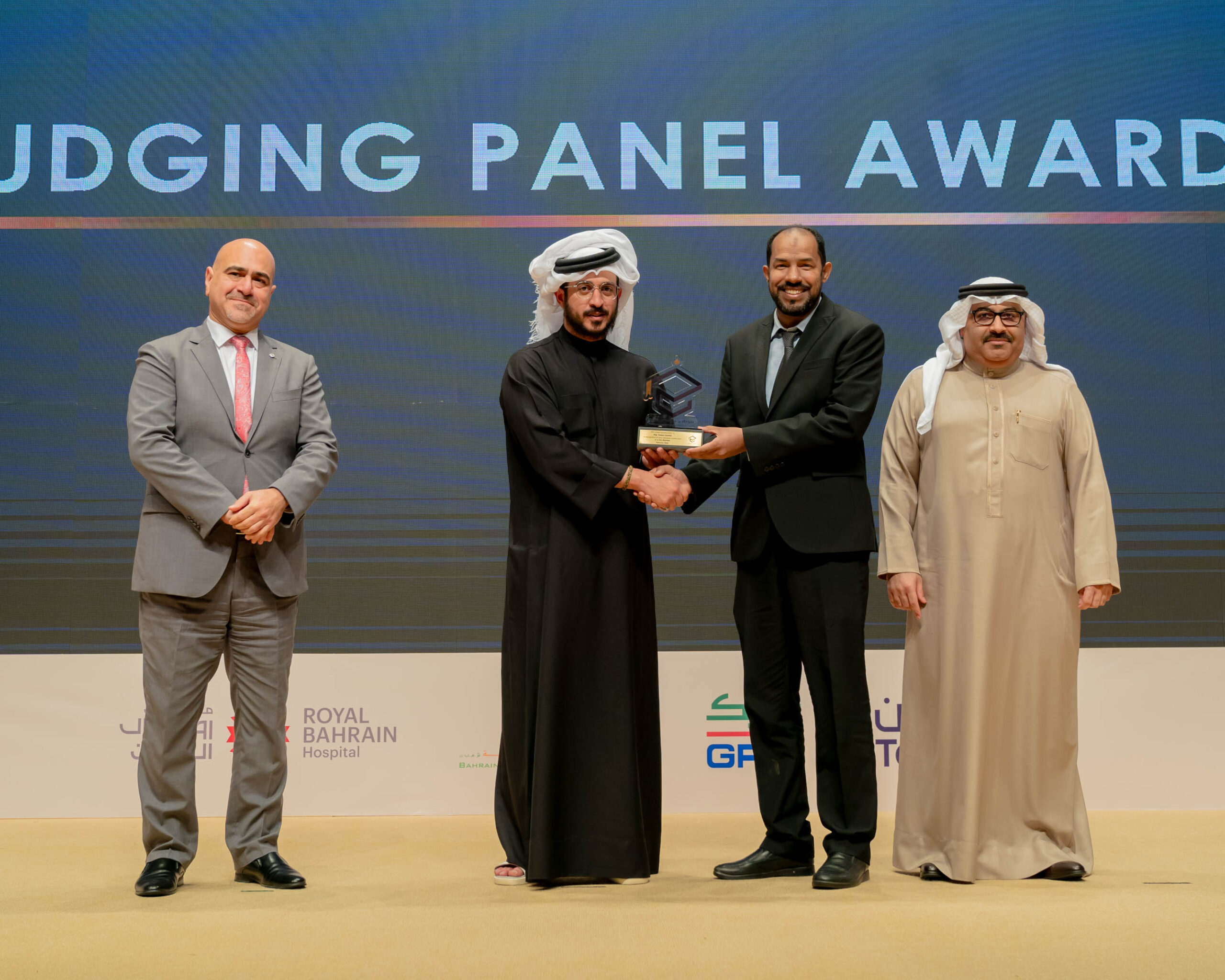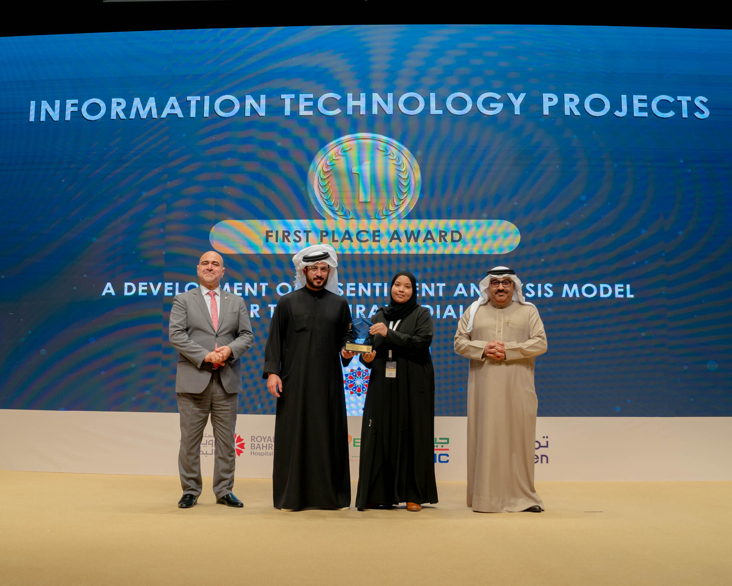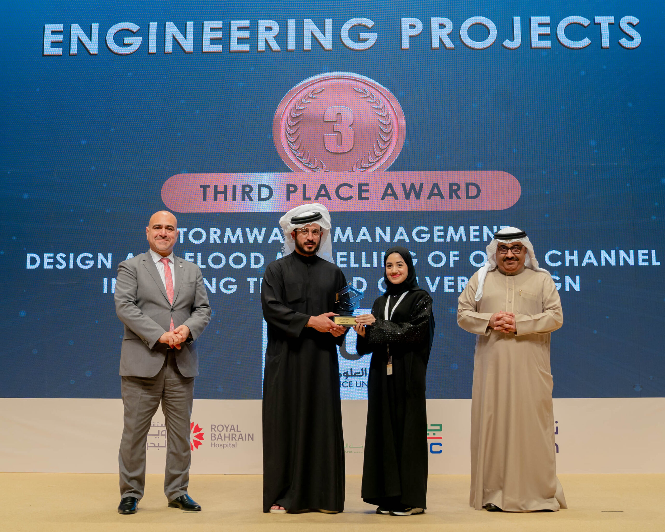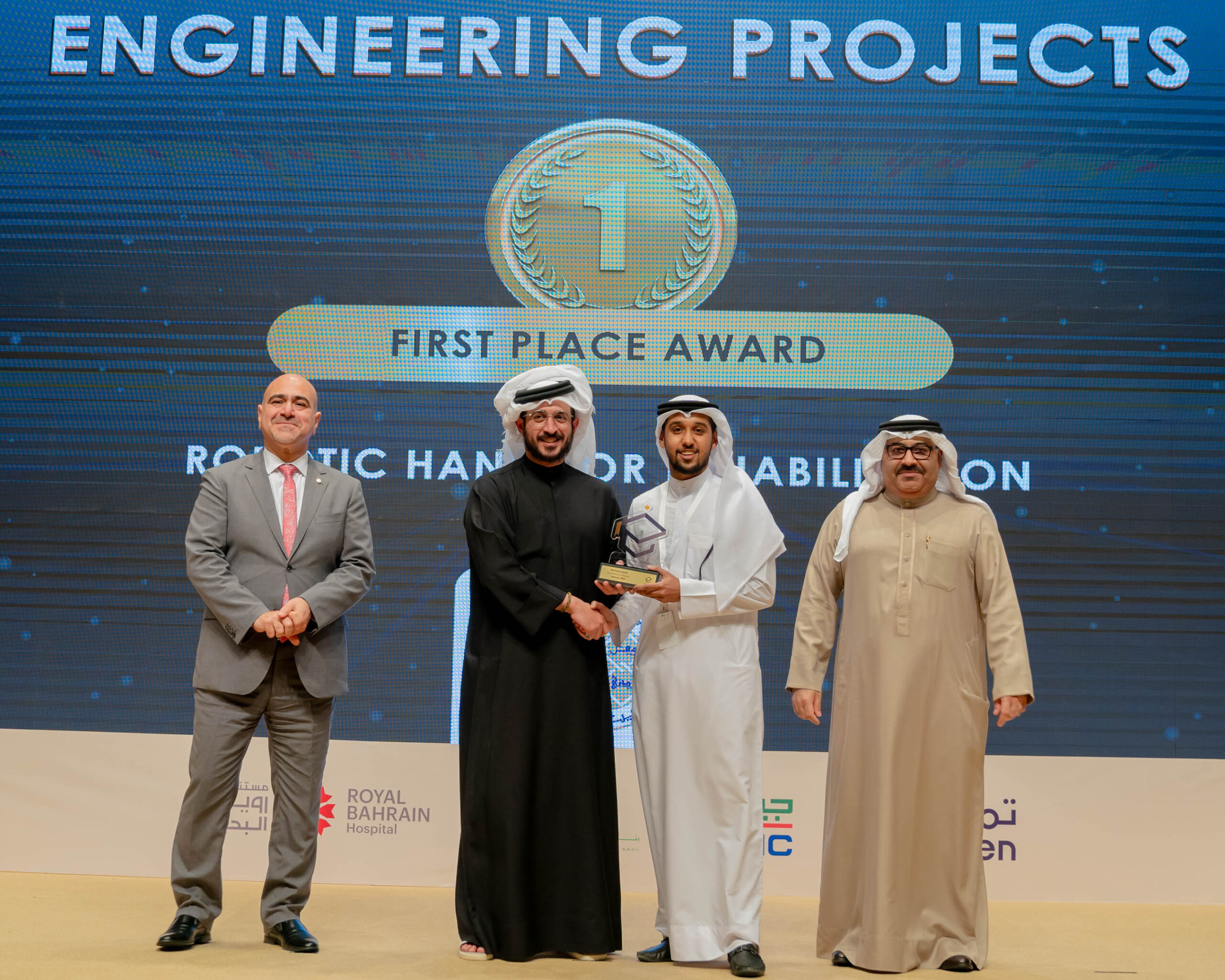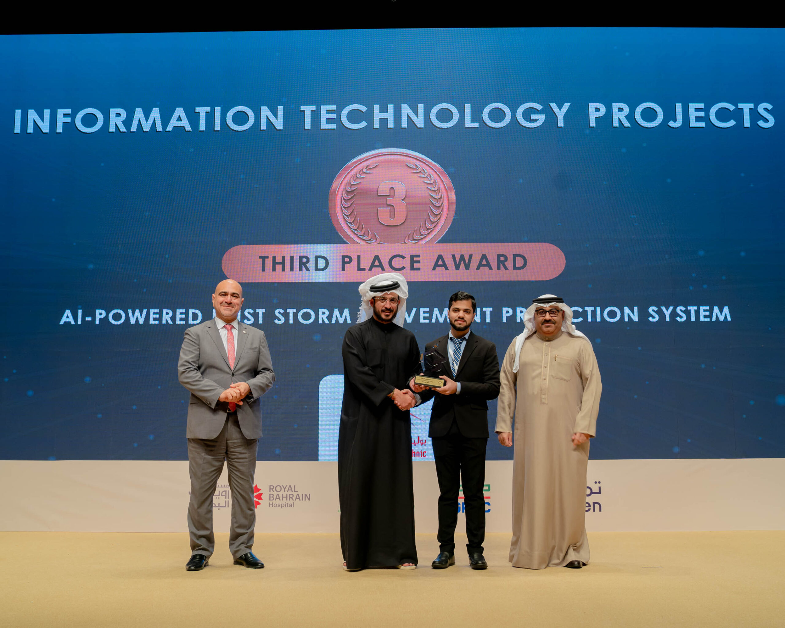 الفائز بالمركز الأول: رياض صالح حسن- عيسى عبدالعزيز- نعمان عبدالغفار من جامعةِ البحرين.