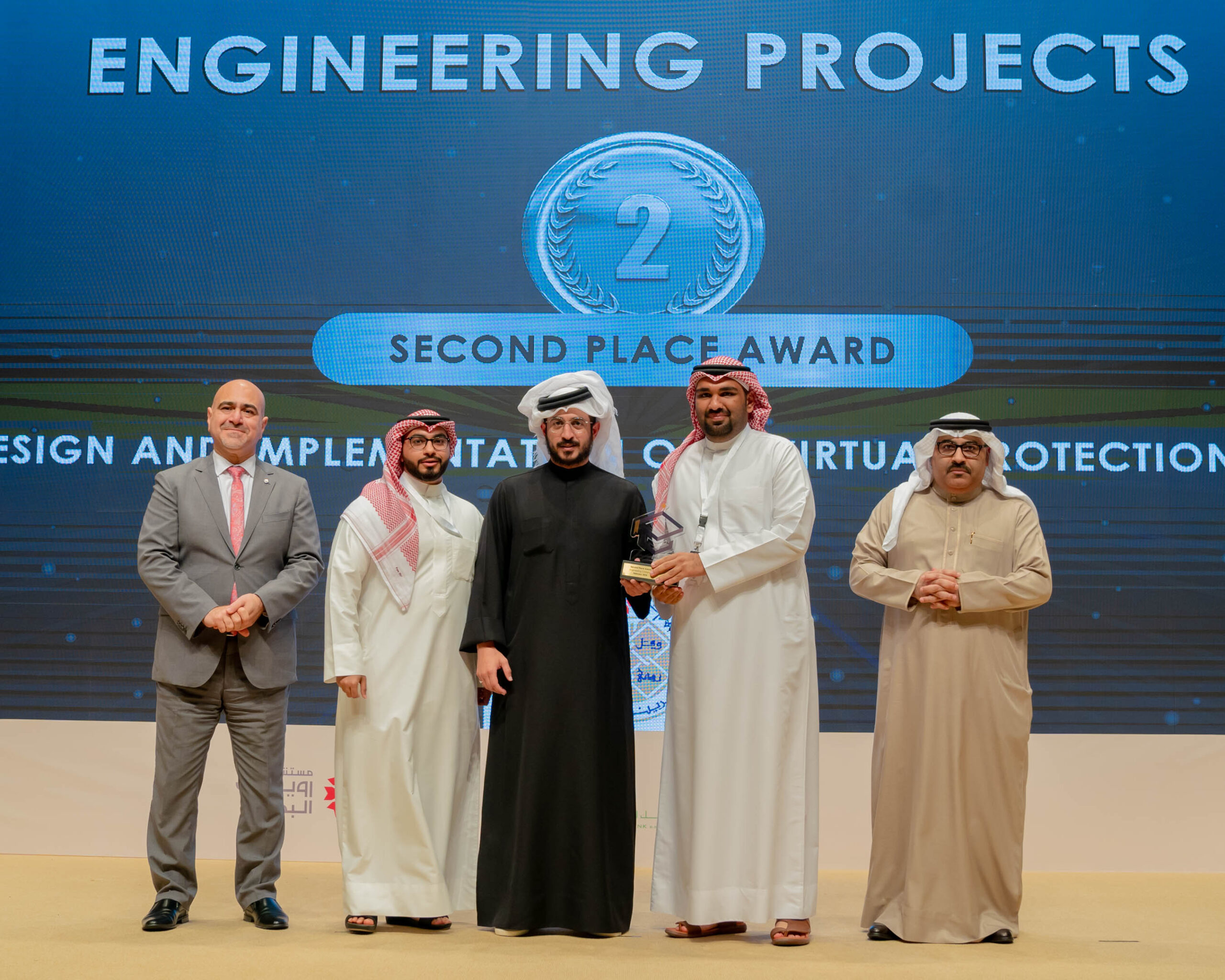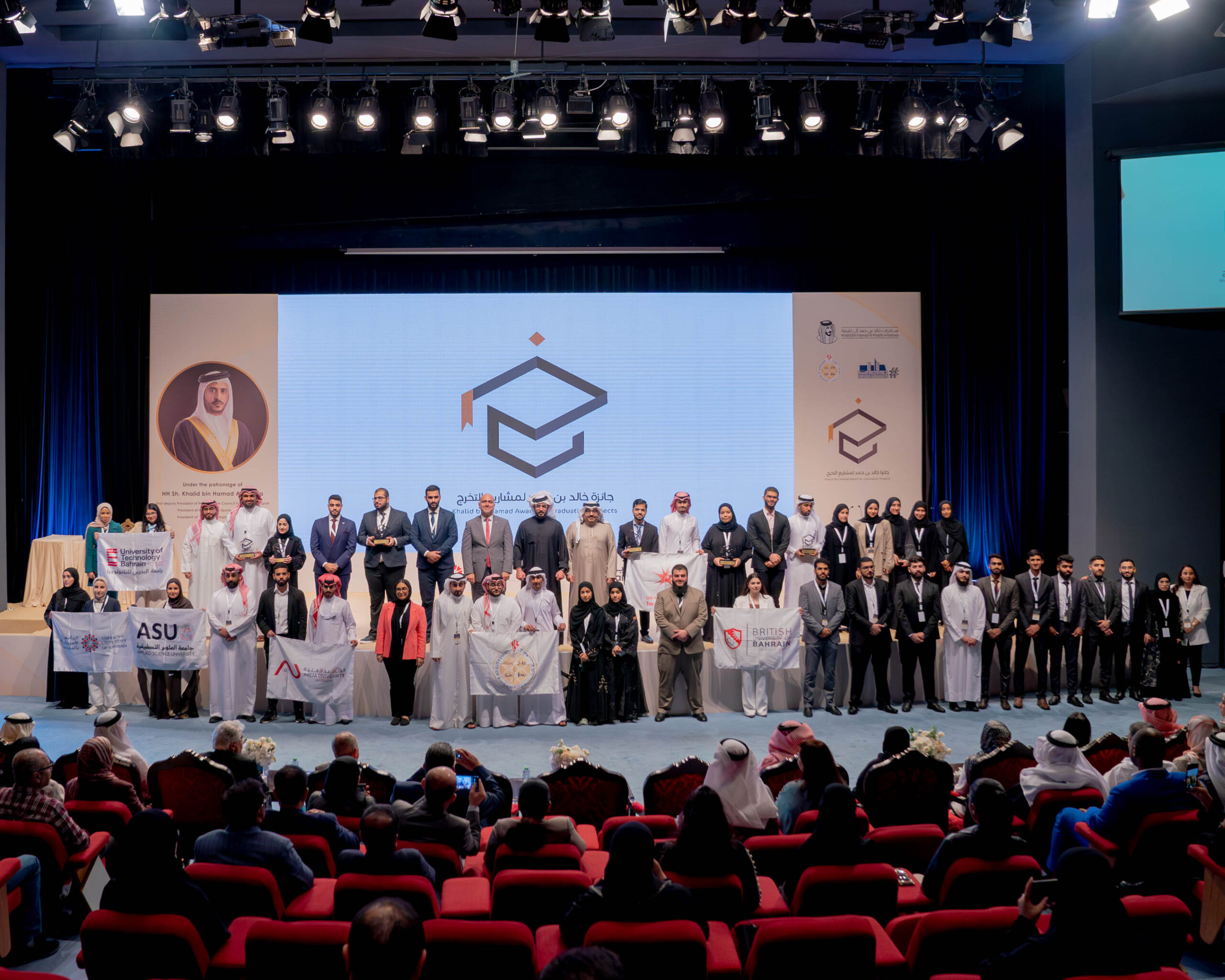 تحت رعاية سمو الشيخ خالد بن حمد آل خليفة النائب الأول لرئيس المجلس الأعلى للشباب والرياضة، رئيس الهيئة العامة للرياضة، رئيس اللجنة الأولمبية البحرينية، أقيم حفل الختام لـ”جائزة خالد بن حمد لمشاريع التخرج” لطلبة مؤسسات التعليم العالي بالمملكة، بحضور سعادة الدكتور محمد بن مبارك جمعة وزير التربية والتعليم رئيس مجلس أمناء جامعة البحرين وسعادة السيد محمد علي القائد الرئيس التنفيذي لهيئة المعلومات والحكومة الإلكترونية وسعادة الدكتورة دينا الجهرمي الأمين العام لمجلس التعليم العالي وسعادة الدكتور فؤاد محمد الأنصاري رئيس جامعة البحرين وعدد من المسئولين والعاملين في قطاع الهندسة وتقنية المعلومات.