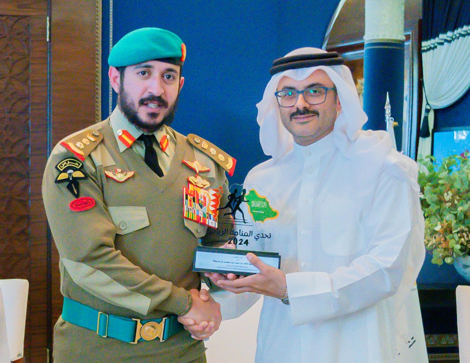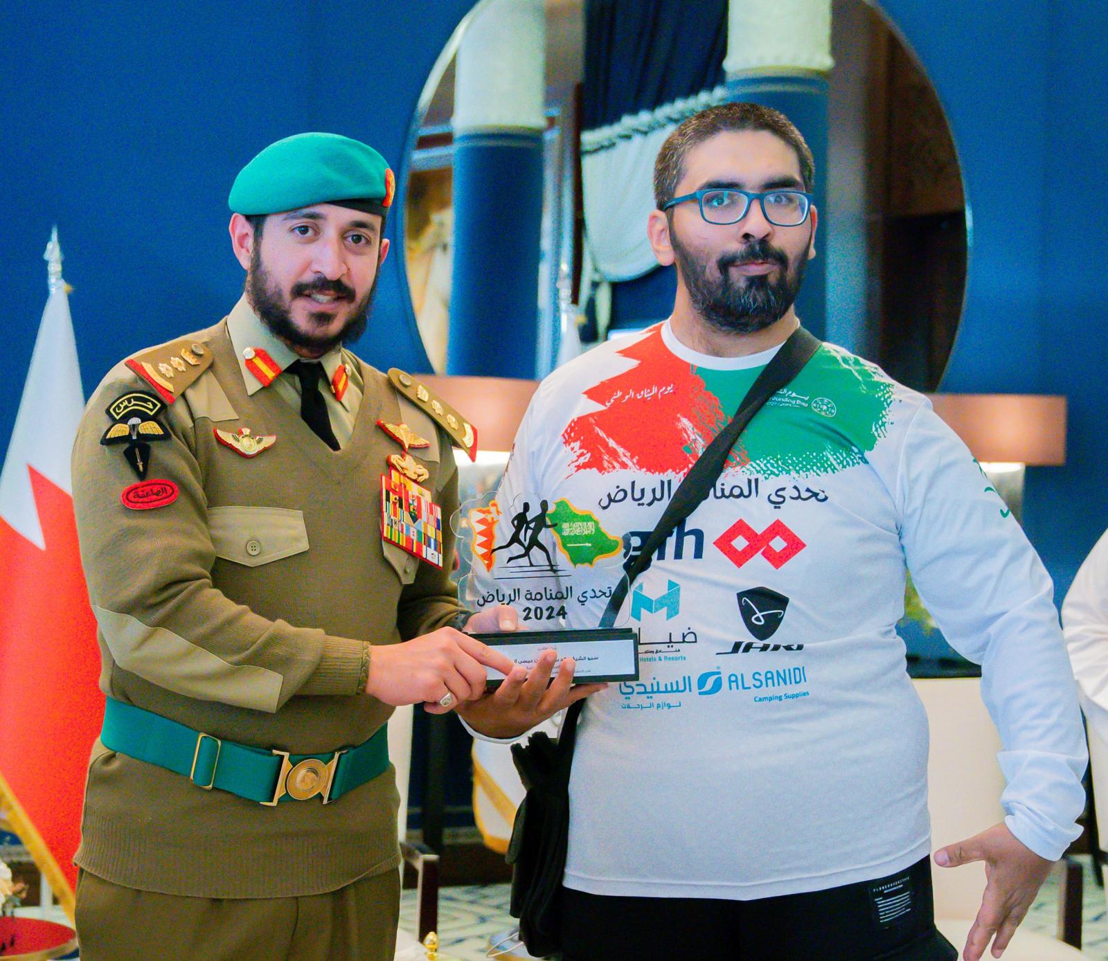 وكرم سمو الشيخ خالد بن حمد آل خليفة جميع القائمين والمشاركين في مبادرة تحدي المنامة الرياض والتي تعد تعبيرا صادقا عن المشاعر والعلاقات الأخوية الوطيدة ووشائج القربى التي تجمع بين البلدين الشقيقين والتي تحظى بدعم ورعاية حضرة صاحب الجلالة الملك حمد بن عيسى آل خليفة عاهل البلاد المعظم حفظه الله ورعاه وأخيه خادم الحرمين الشريفين الملك سلمان بن عبدالعزيز آل سعود عاهل المملكة العربية السعودية، مقدرا سموه للفريق الجهود المبذولة ونجاح المبادرة وتمنى لهم المزيد من التوفيق في مبادراتهم القادمة.