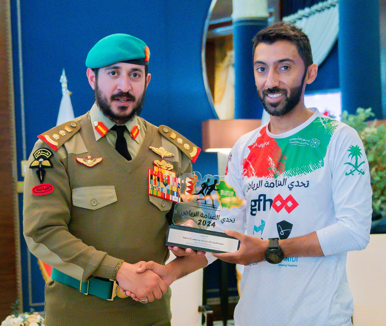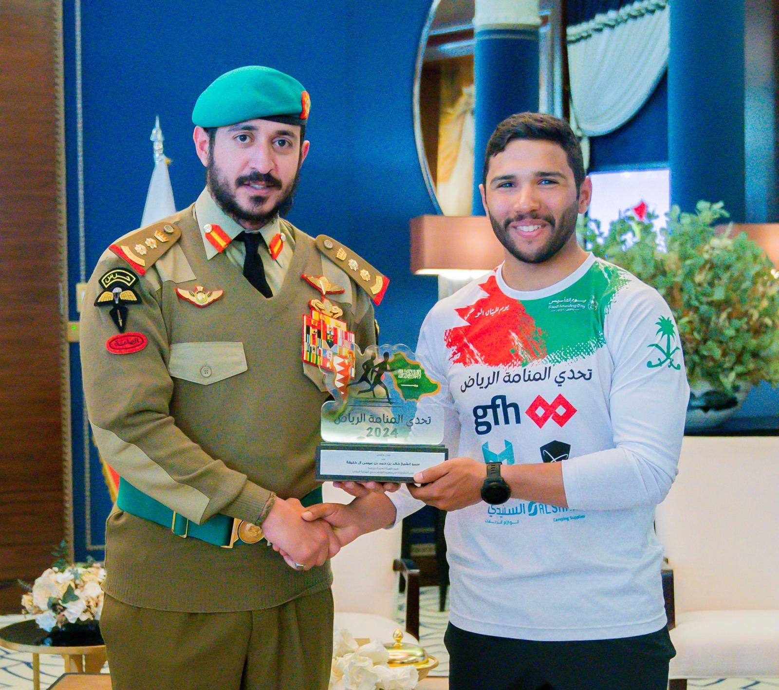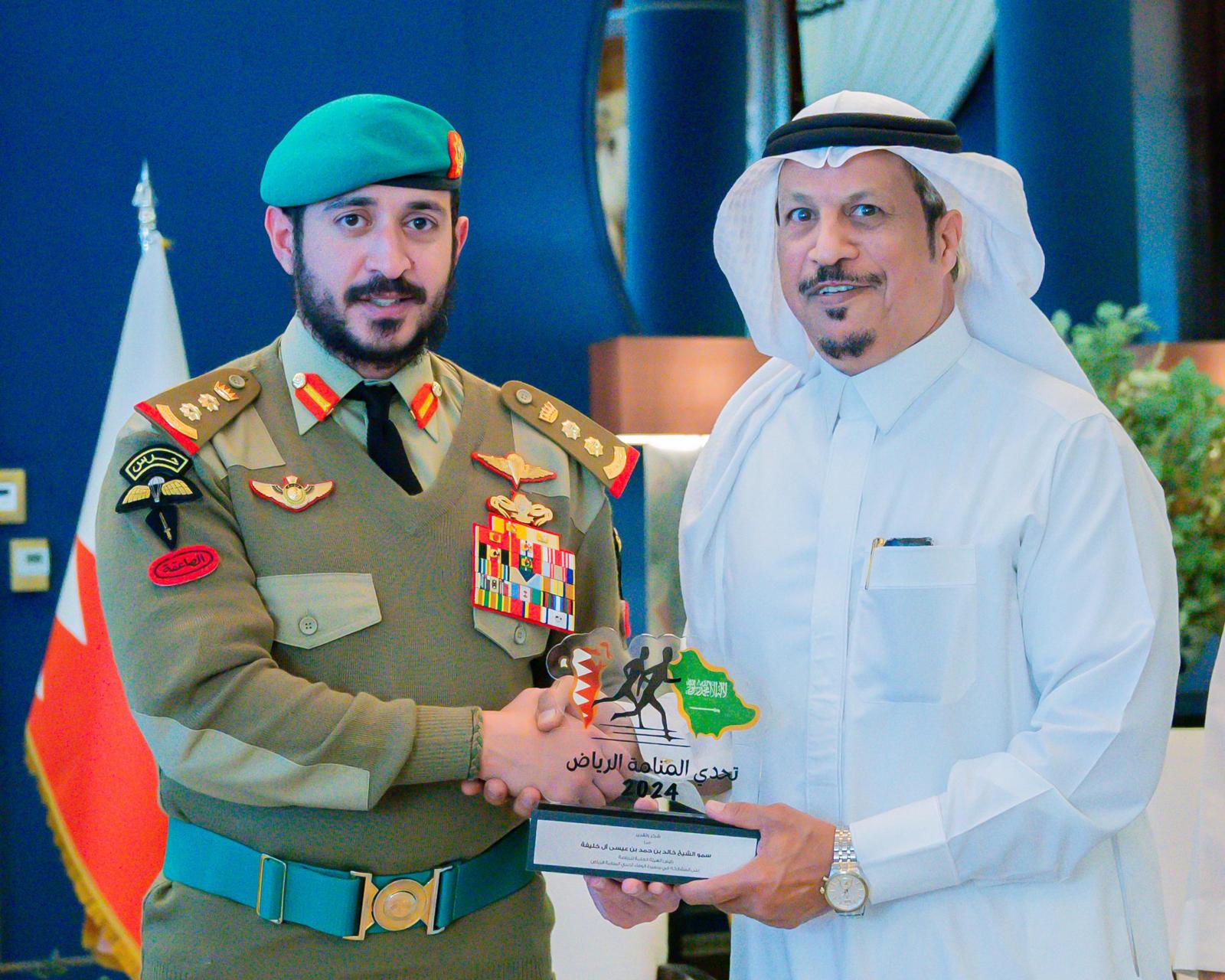 استقبل سمو الشيخ خالد بن حمد آل خليفة النائب الأول لرئيس المجلس الأعلى للشباب والرياضة رئيس الهيئة العامة للرياضة رئيس اللجنة الأولمبية البحرينية فريق شباب تحدي المنامة الرياض الذي قام بمبادرة الجري من المنامة إلى قلعة المصمك في الرياض لمسافة تزيد عن 400 كيلومتر وذلك بمناسبة يوم التأسيس بالمملكة العربية السعودية الذي يصادف 22 فبراير من كل عام.