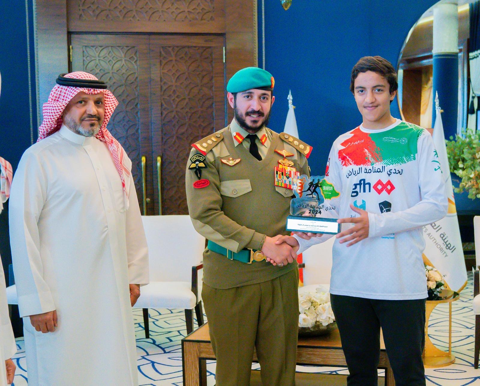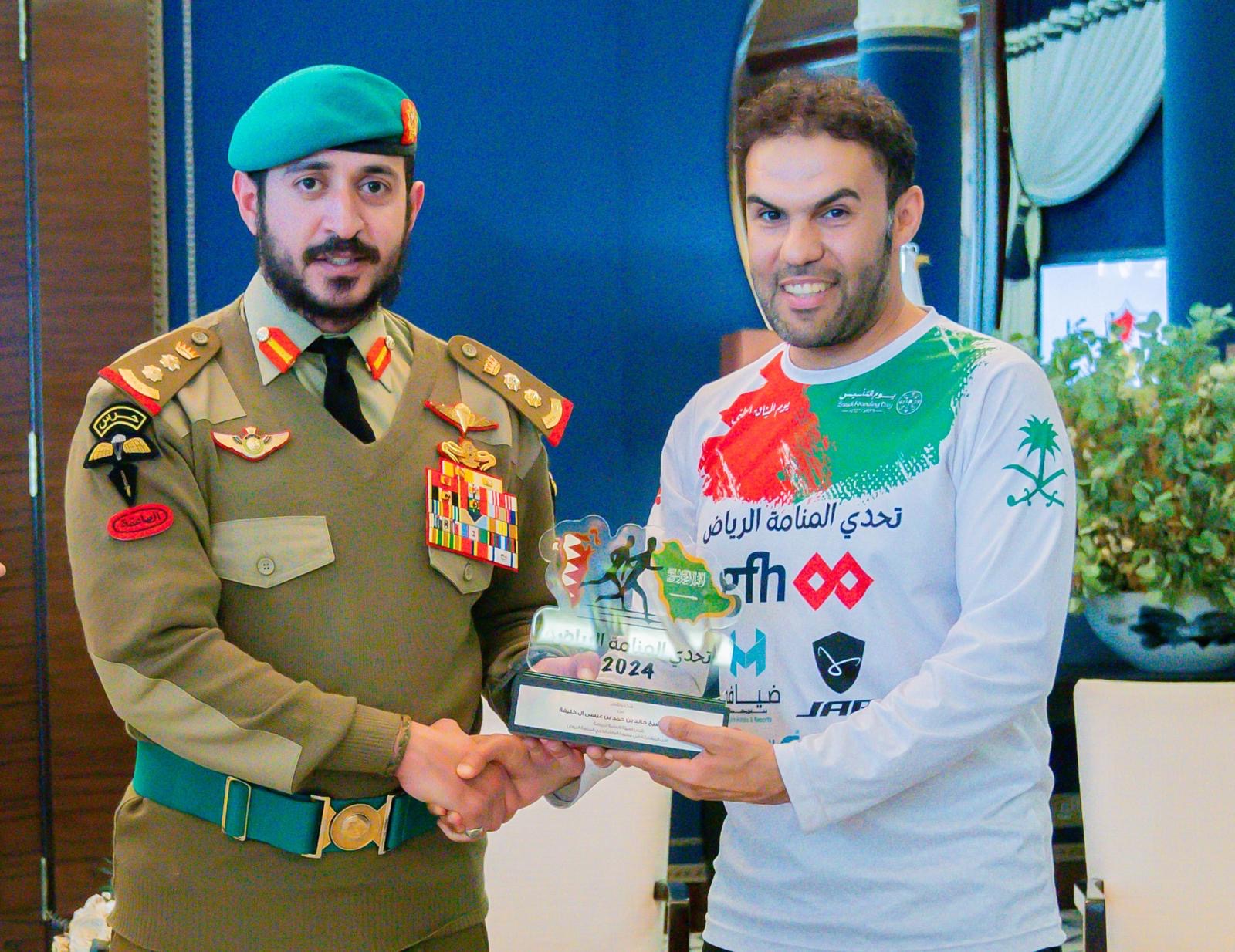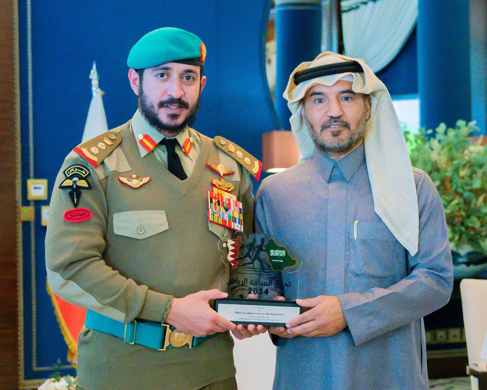 استقبل سمو الشيخ خالد بن حمد آل خليفة النائب الأول لرئيس المجلس الأعلى للشباب والرياضة رئيس الهيئة العامة للرياضة رئيس اللجنة الأولمبية البحرينية فريق شباب تحدي المنامة الرياض الذي قام بمبادرة الجري من المنامة إلى قلعة المصمك في الرياض لمسافة تزيد عن 400 كيلومتر وذلك بمناسبة يوم التأسيس بالمملكة العربية السعودية الذي يصادف 22 فبراير من كل عام.