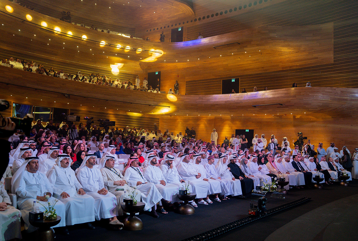 وتضمن الأوبريت أيضًا فقرات سردية درامية جسدت محطات من تاريخ الفن الخليجي، إلى جانب استخدام تقنيات حديثة ومؤثرات بصرية، أضفت طابعًا إبداعيًا وتفاعليًا على العرض، وأسهمت في تعزيز التجربة البصرية لدى الحضور.