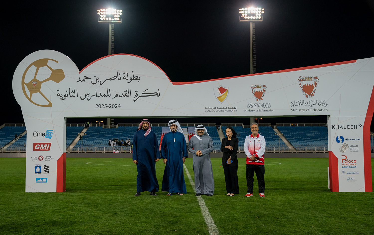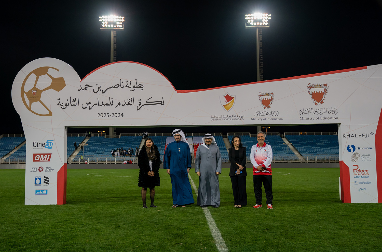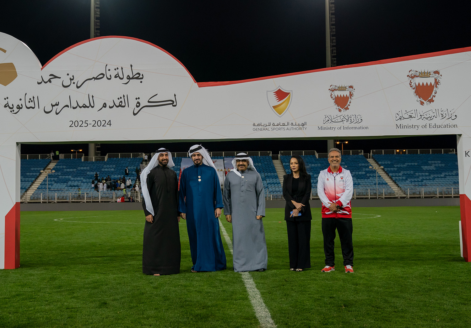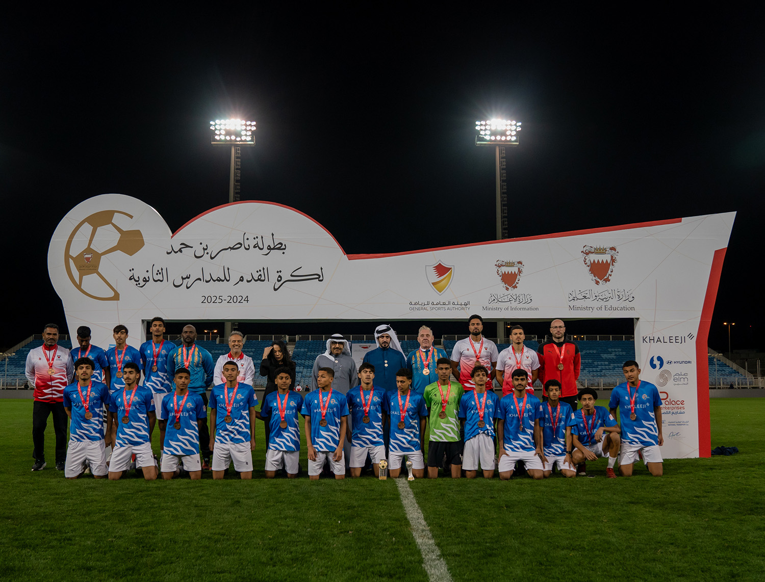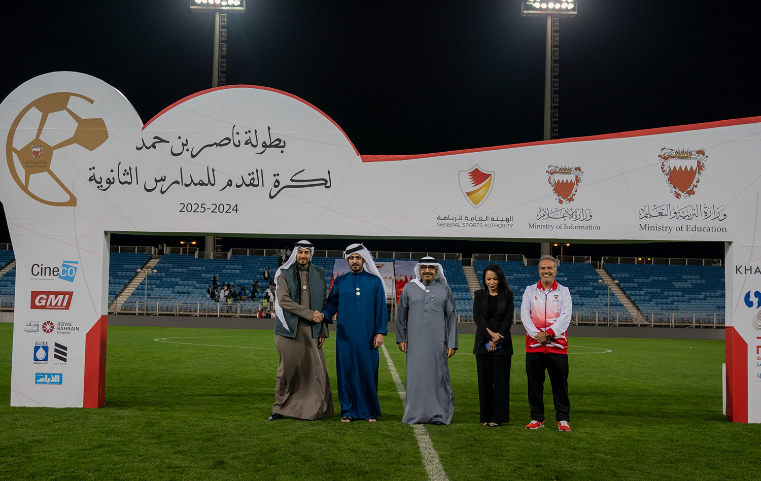 برعاية كريمة من سمو الشيخ ناصر بن حمد آل خليفة ممثل جلالة الملك للأعمال الإنسانية وشؤون الشباب رئيس المجلس الأعلى للشباب والرياضة، وبحضور سمو الشيخ خالد بن حمد آل خليفة النائب الأول لرئيس المجلس الأعلى للشباب والرياضة رئيس الهيئة العامة للرياضة رئيس اللجنة الأولمبية البحرينية، أقامت وزارة التربية والتعليم المباراة النهائية لبطولة ناصر بن حمد لكرة القدم للمدارس الثانوية للعام الدراسي 2024-2025م.