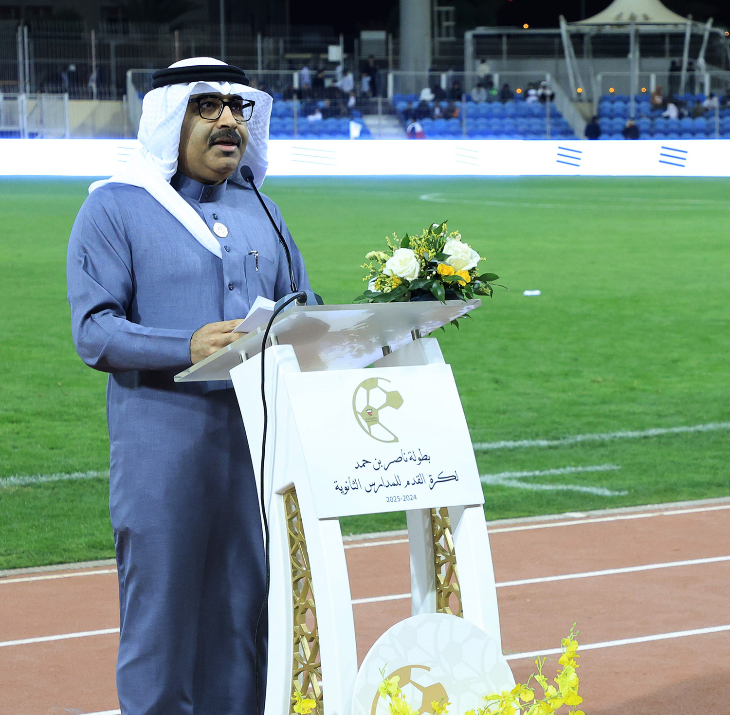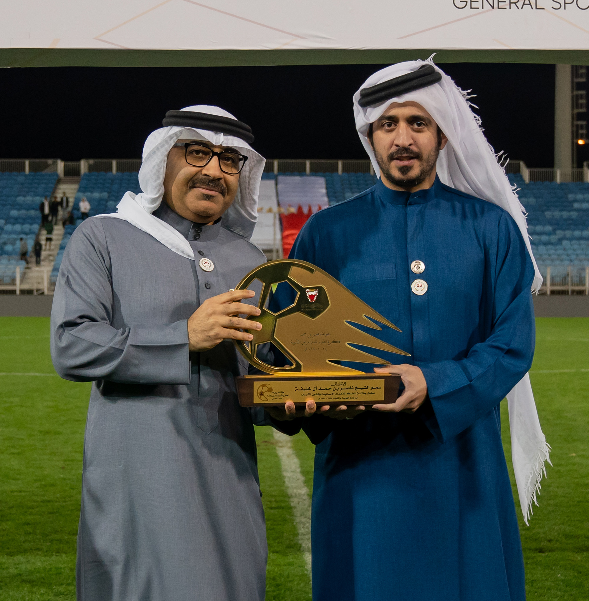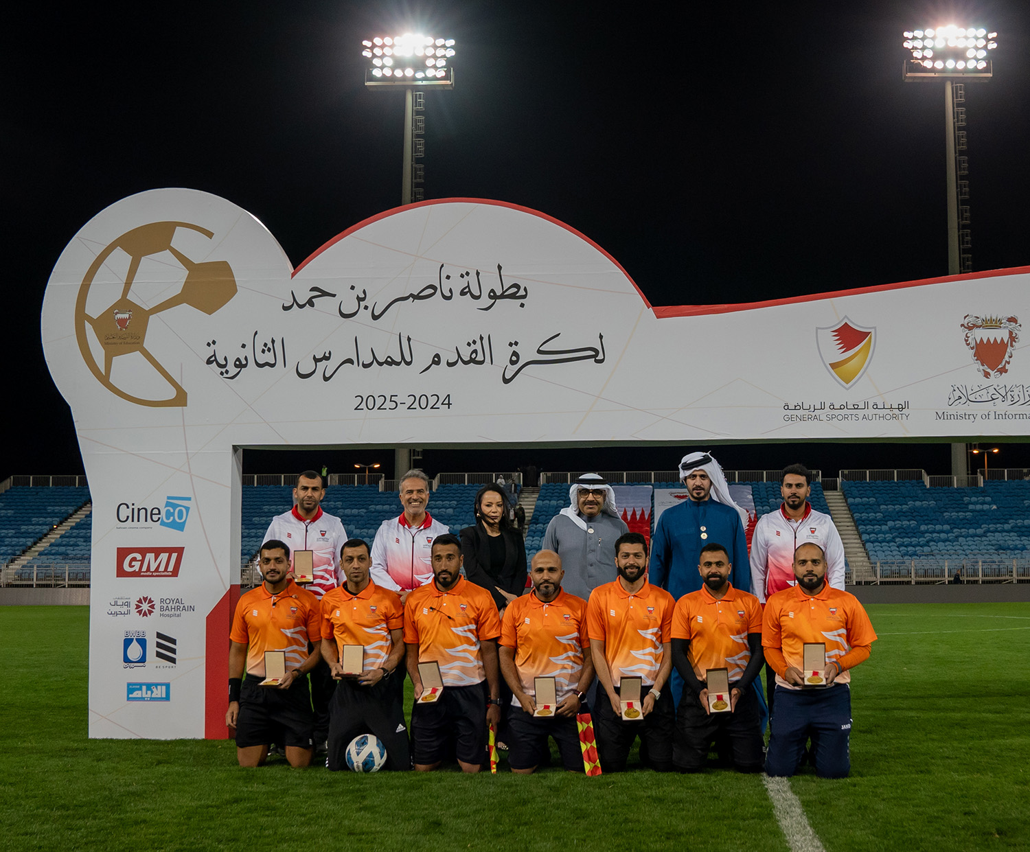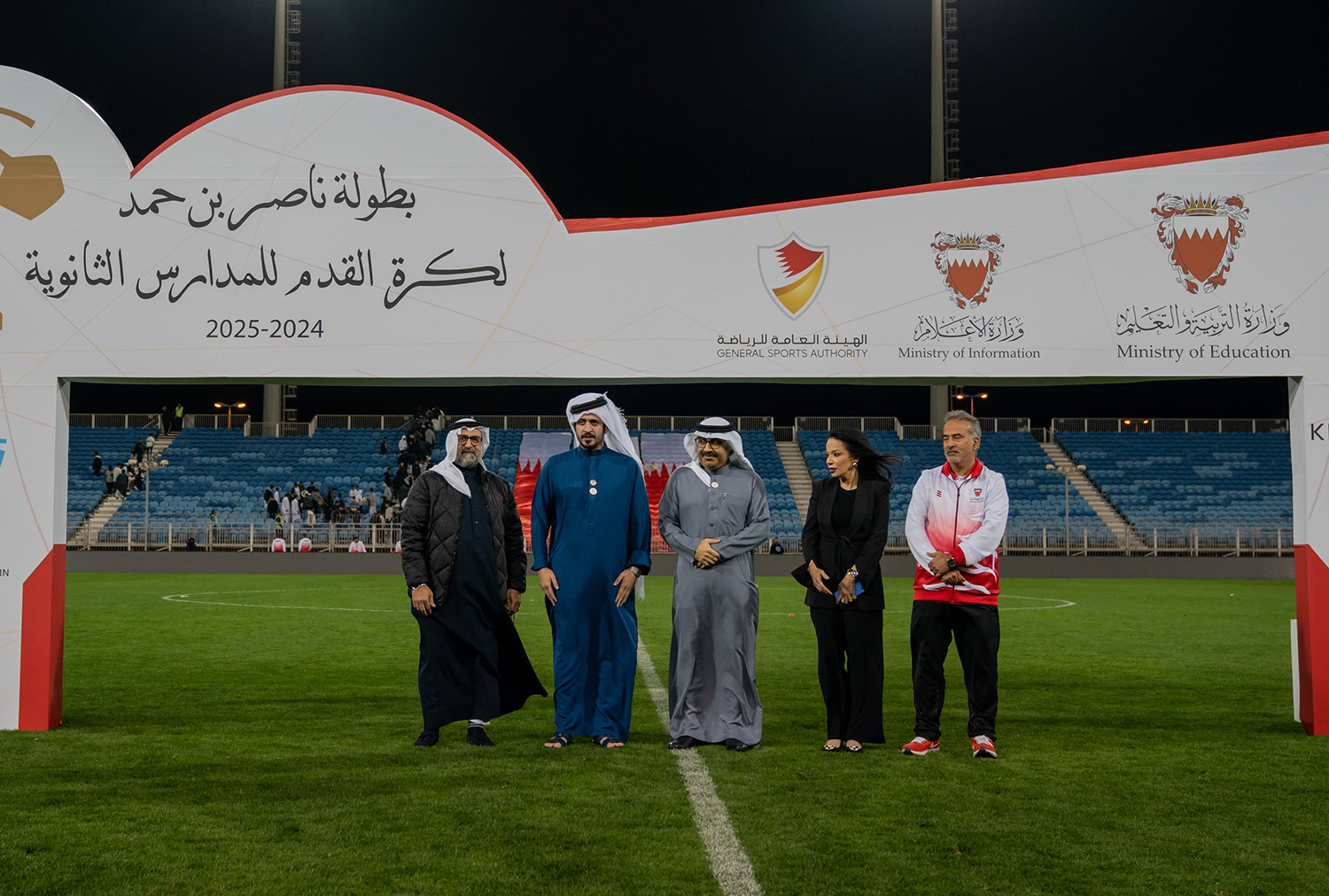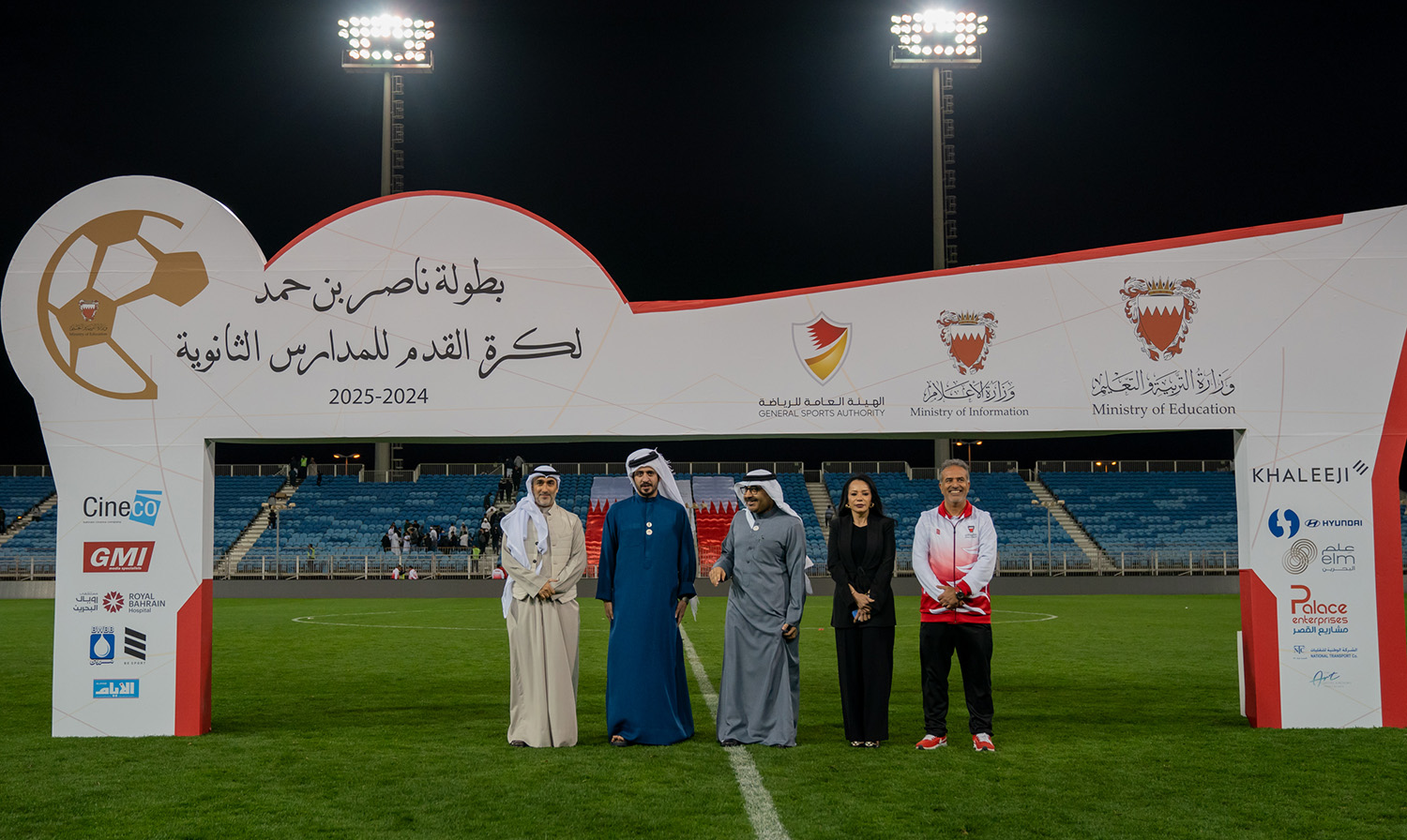 برعاية كريمة من سمو الشيخ ناصر بن حمد آل خليفة ممثل جلالة الملك للأعمال الإنسانية وشؤون الشباب رئيس المجلس الأعلى للشباب والرياضة، وبحضور سمو الشيخ خالد بن حمد آل خليفة النائب الأول لرئيس المجلس الأعلى للشباب والرياضة رئيس الهيئة العامة للرياضة رئيس اللجنة الأولمبية البحرينية، أقامت وزارة التربية والتعليم المباراة النهائية لبطولة ناصر بن حمد لكرة القدم للمدارس الثانوية للعام الدراسي 2024-2025م.